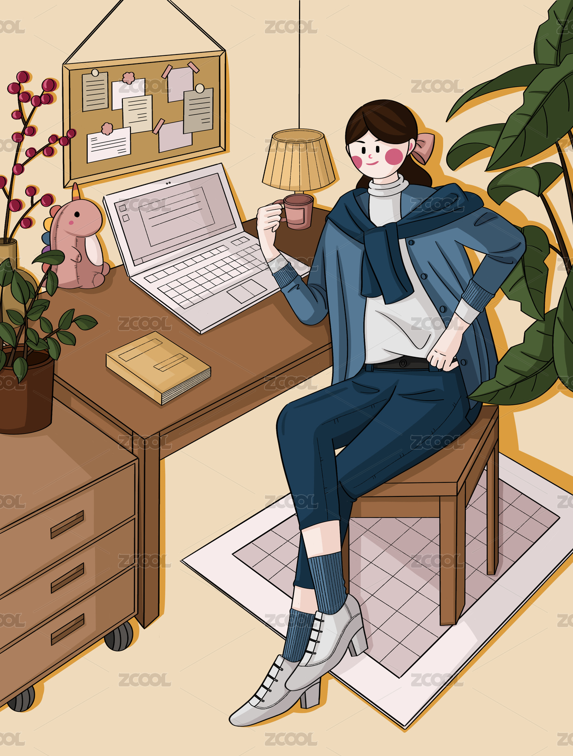 职场人,升职,运营,插画,扁平风,招聘,海报,办公室,简历