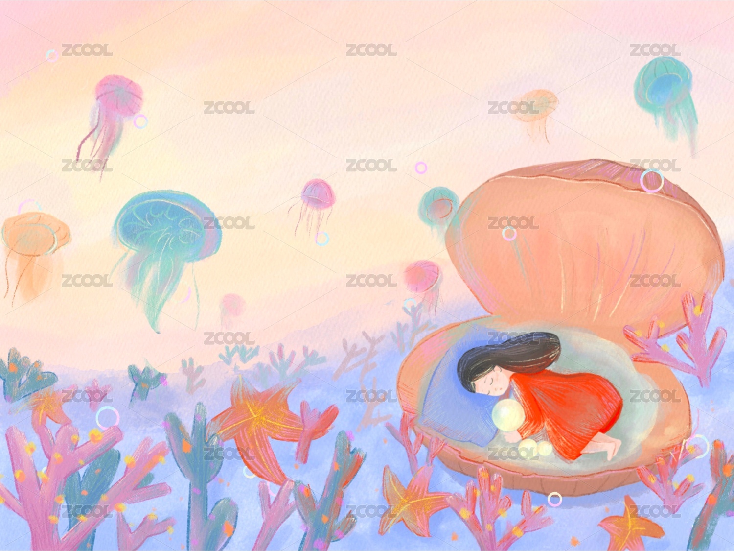 海底,兔,小孩,潜水艇,胡萝卜,鱼,海底植物,水母,梦幻