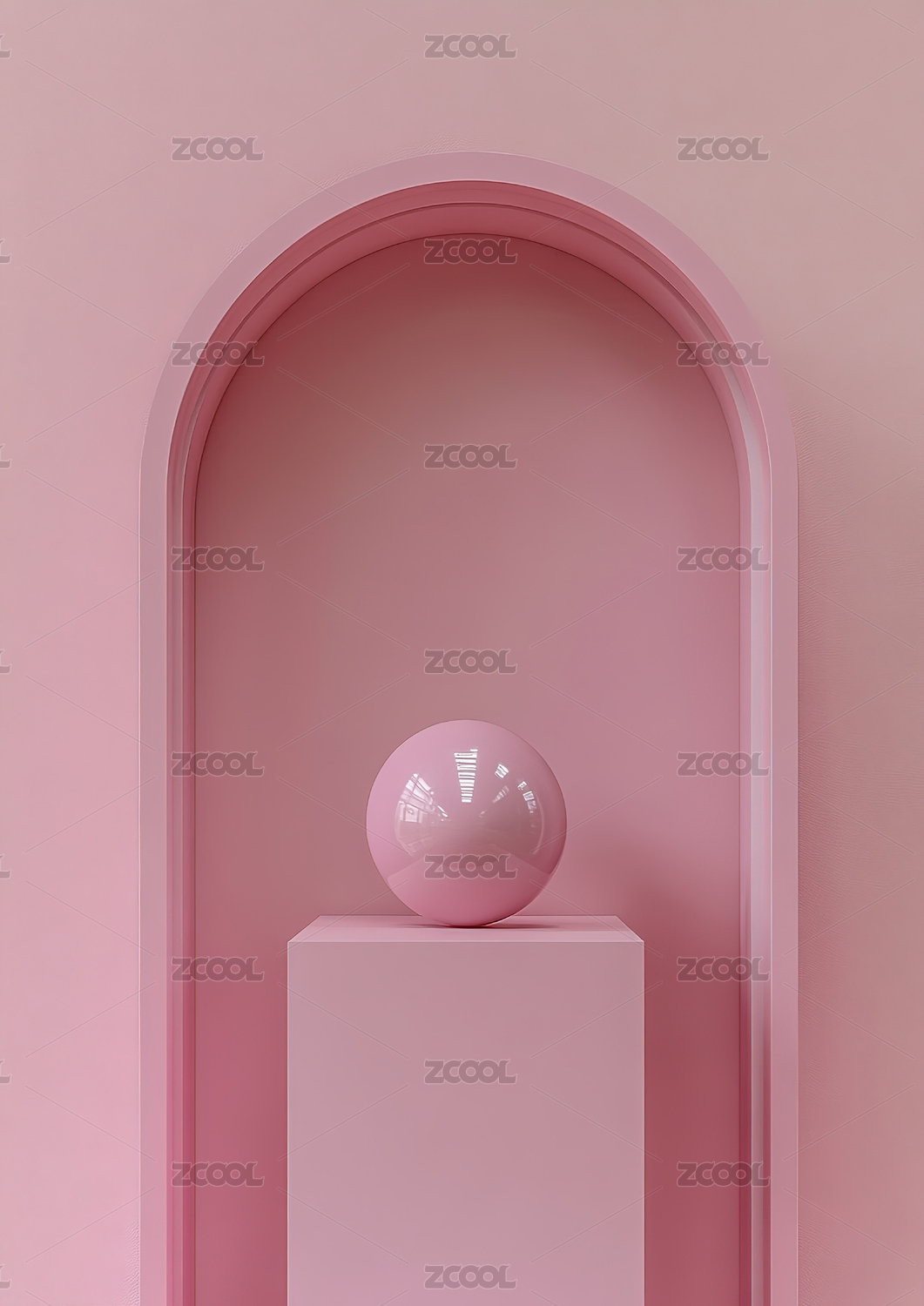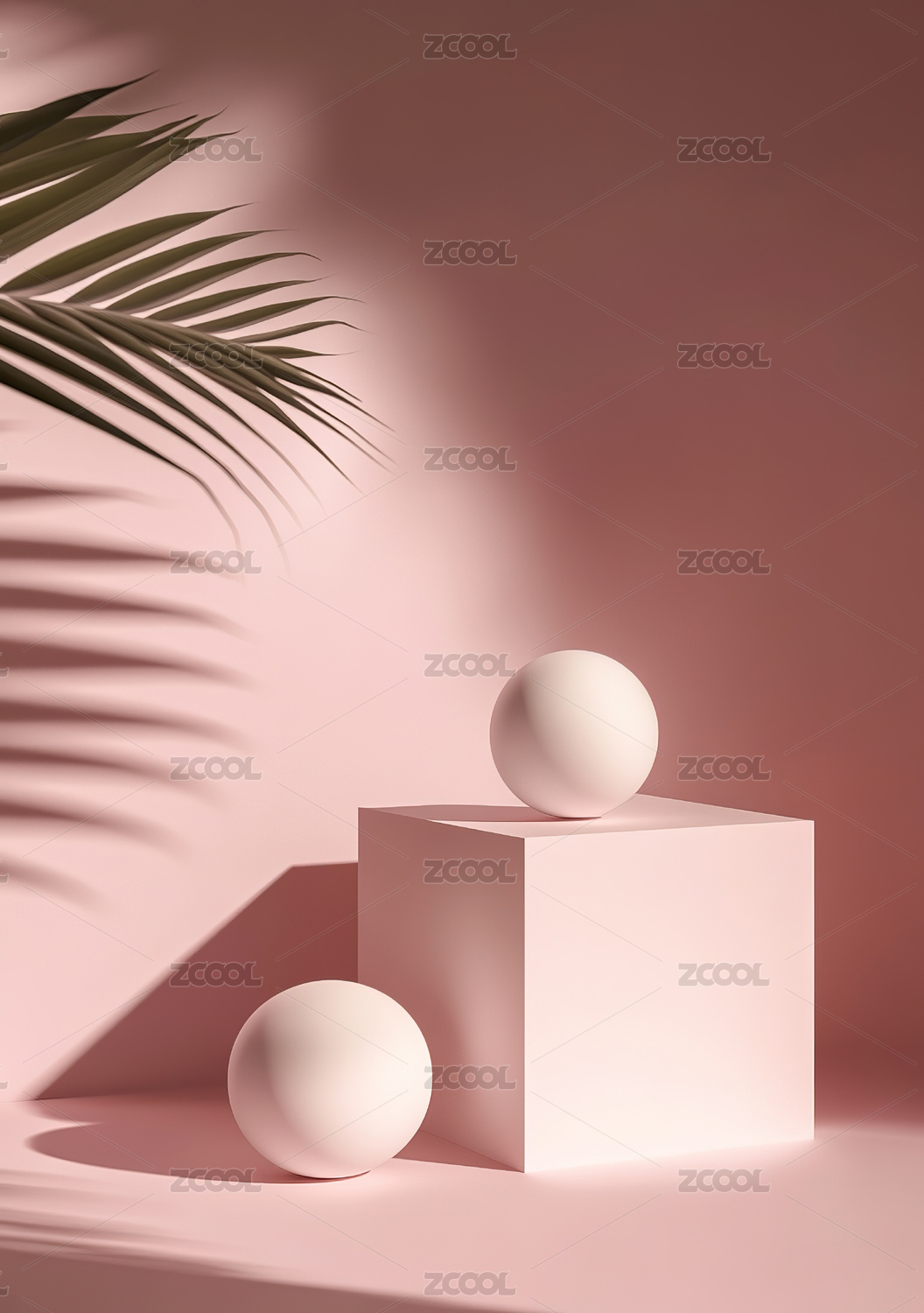 粉色几何场景中的白色球体展示