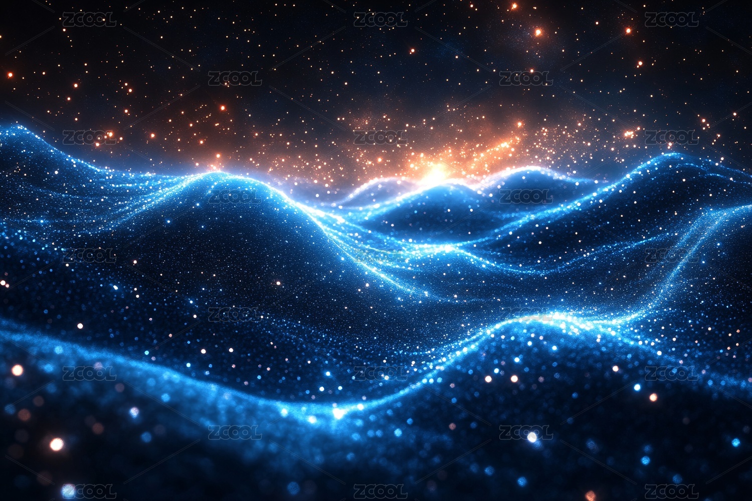星空,星系,宇宙,太空,星尘,光线,粒子,波纹,蓝色,金色
