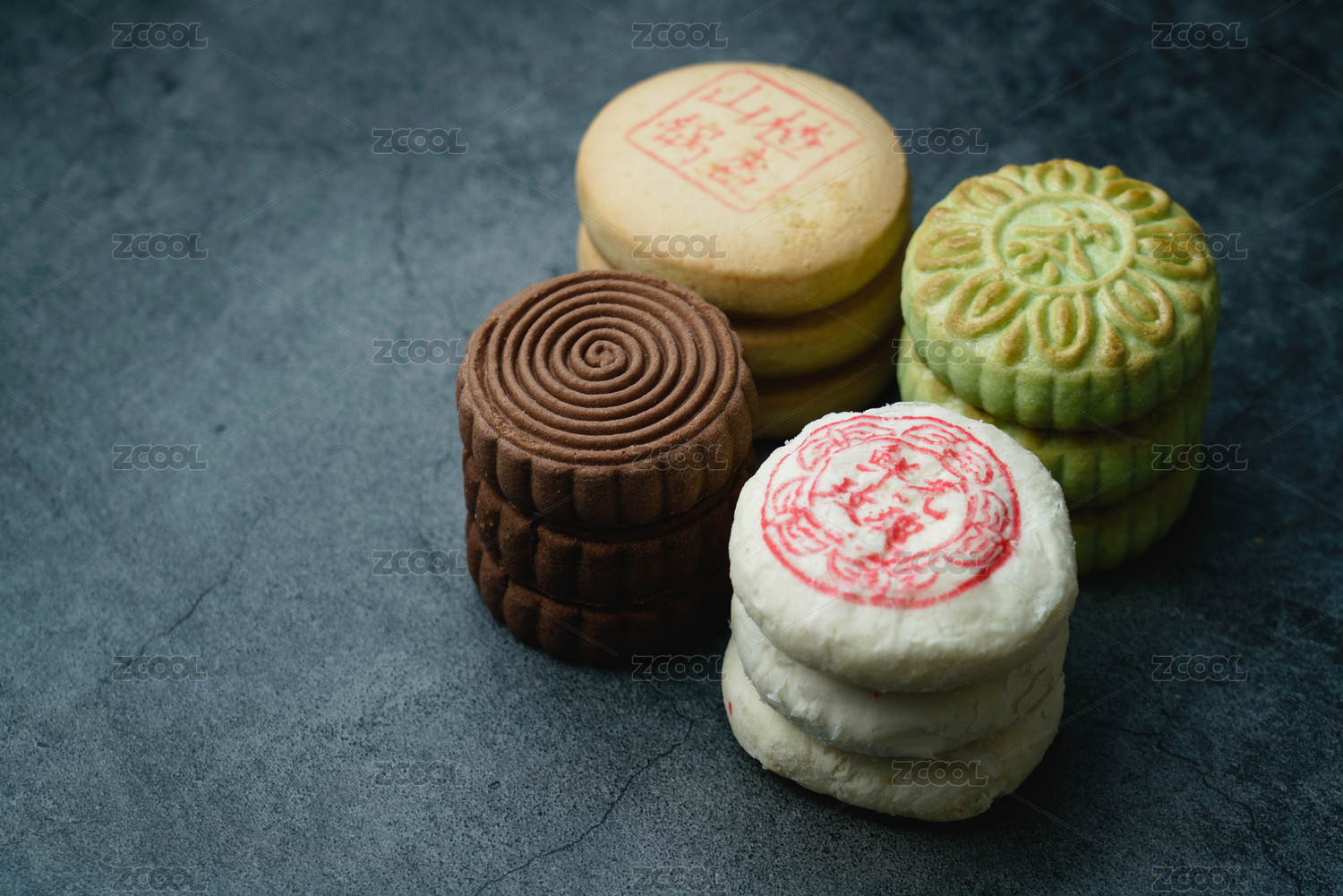 美味好吃的中国传统糕点放在深色背景上