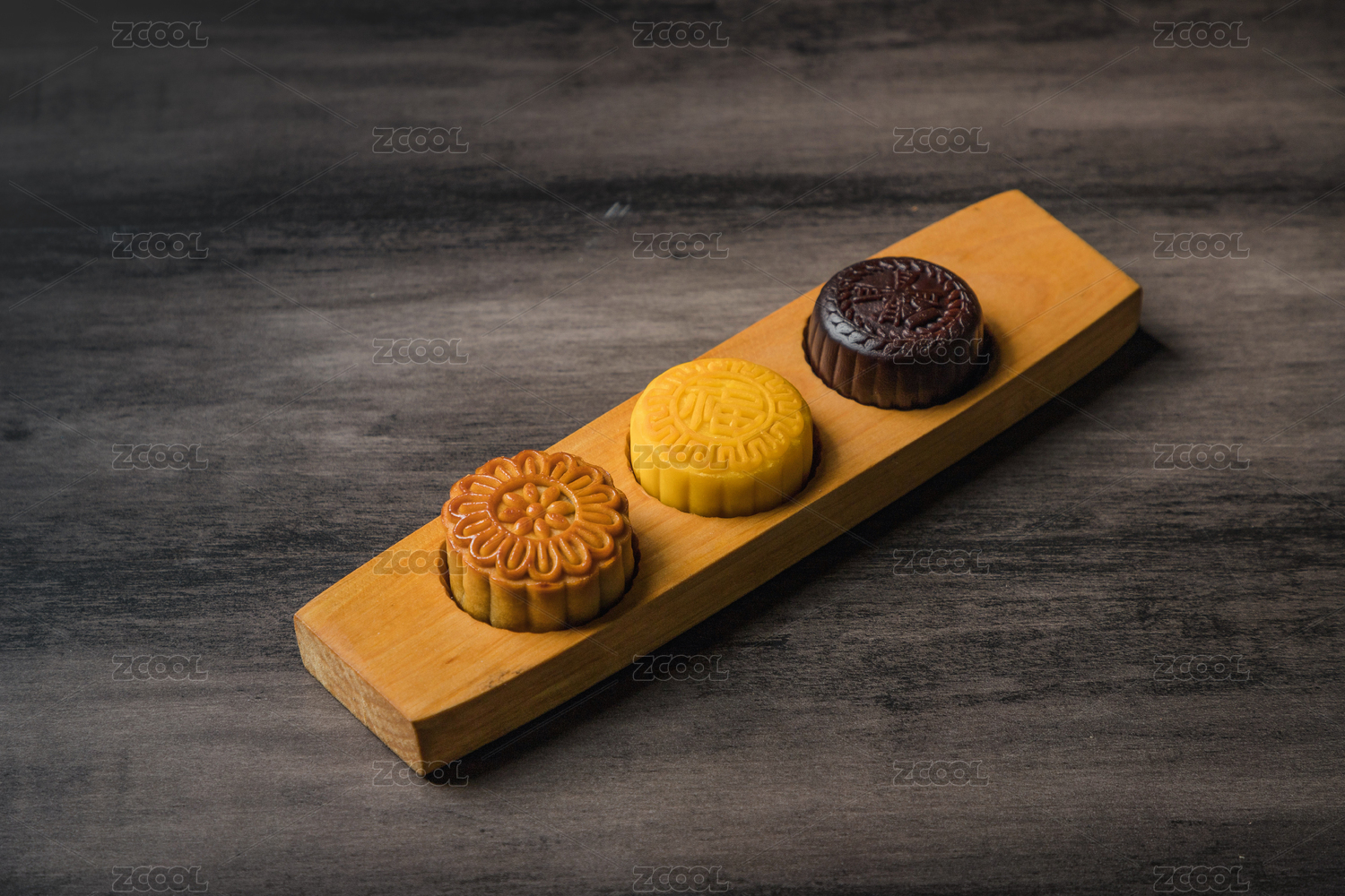 木制的月饼模子上放着三块月饼