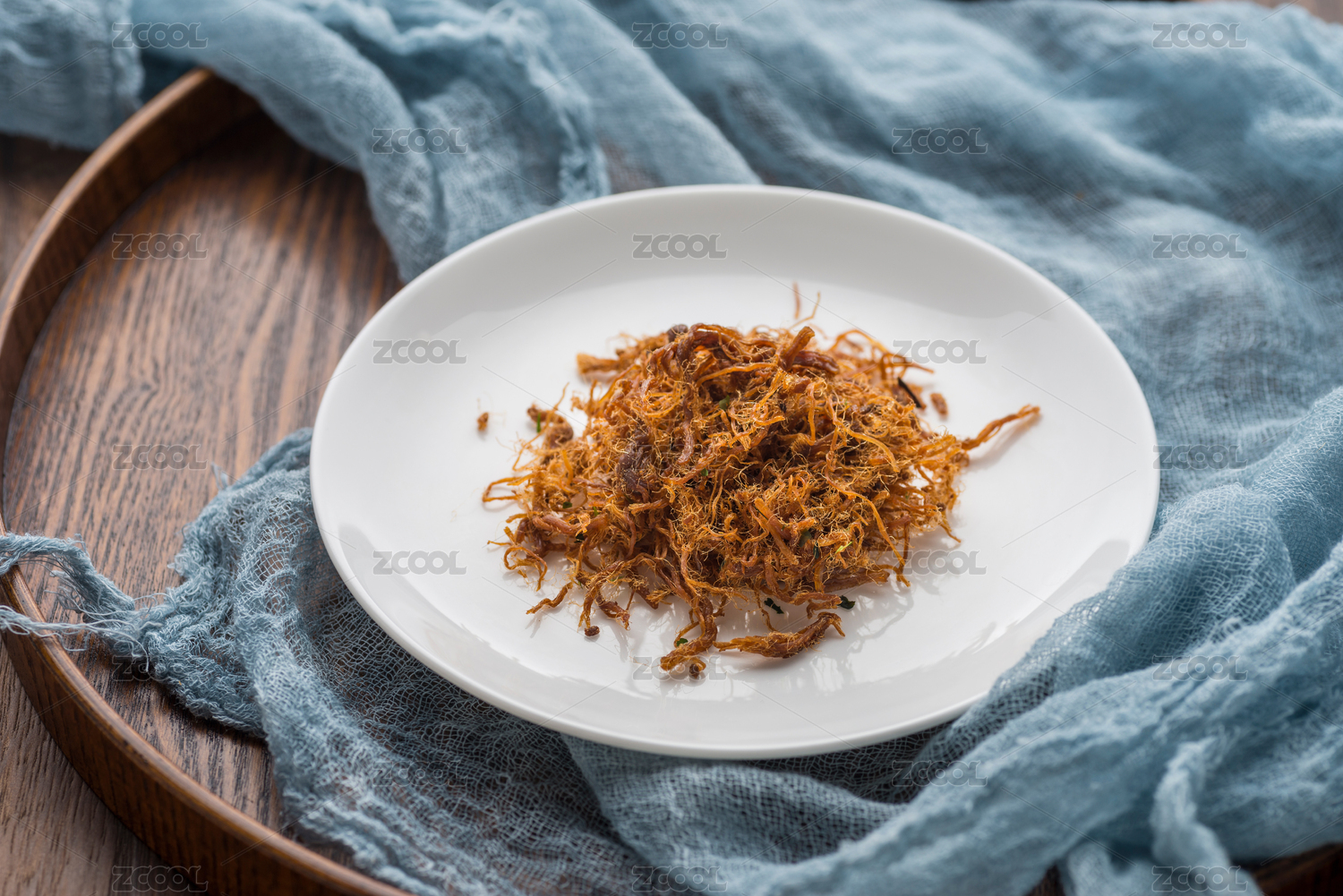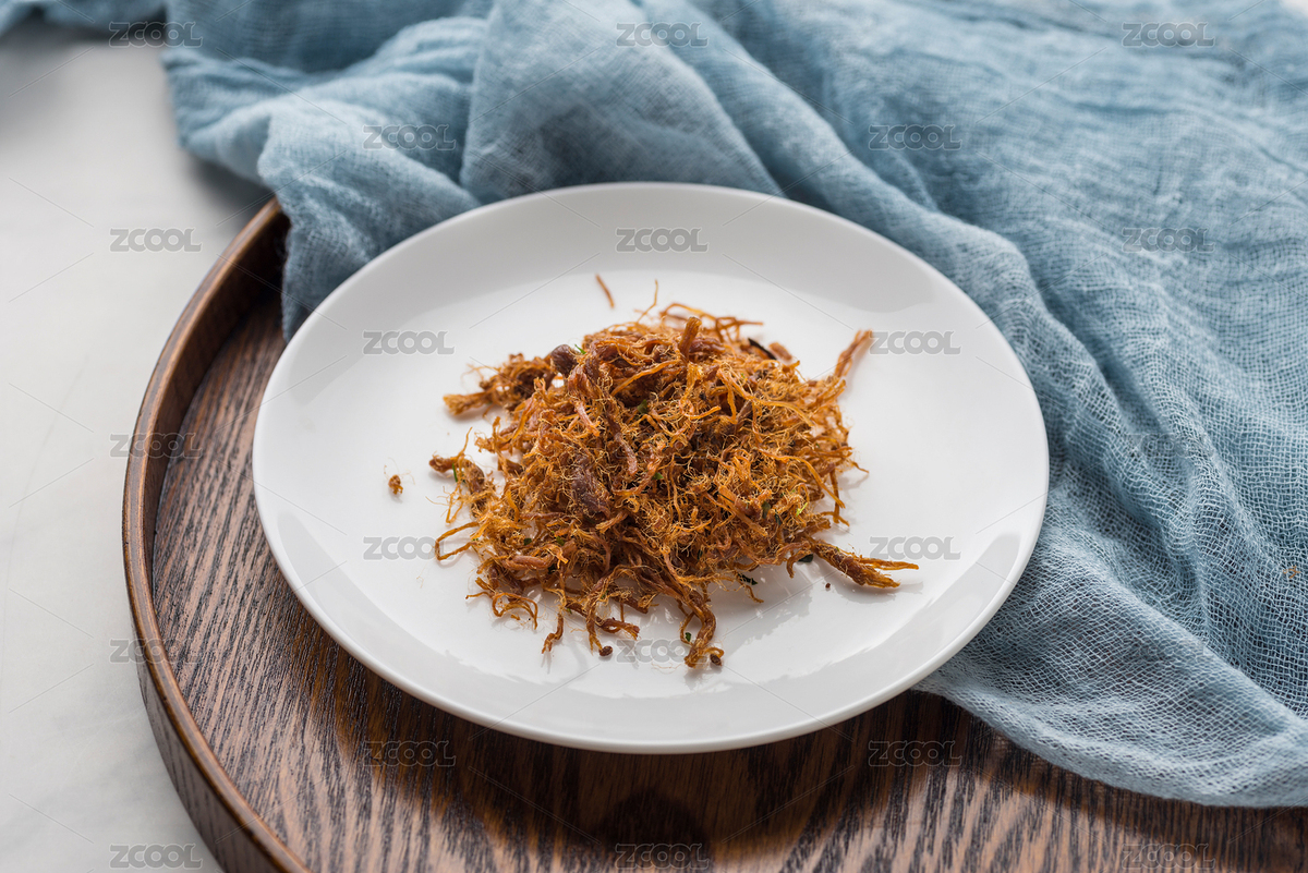 白瓷盘盛放的美味牛肉松