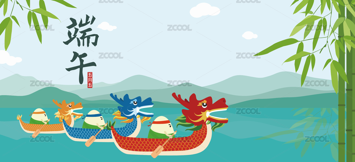 端午节赛龙舟传统节日活动粽子美食国潮插画
