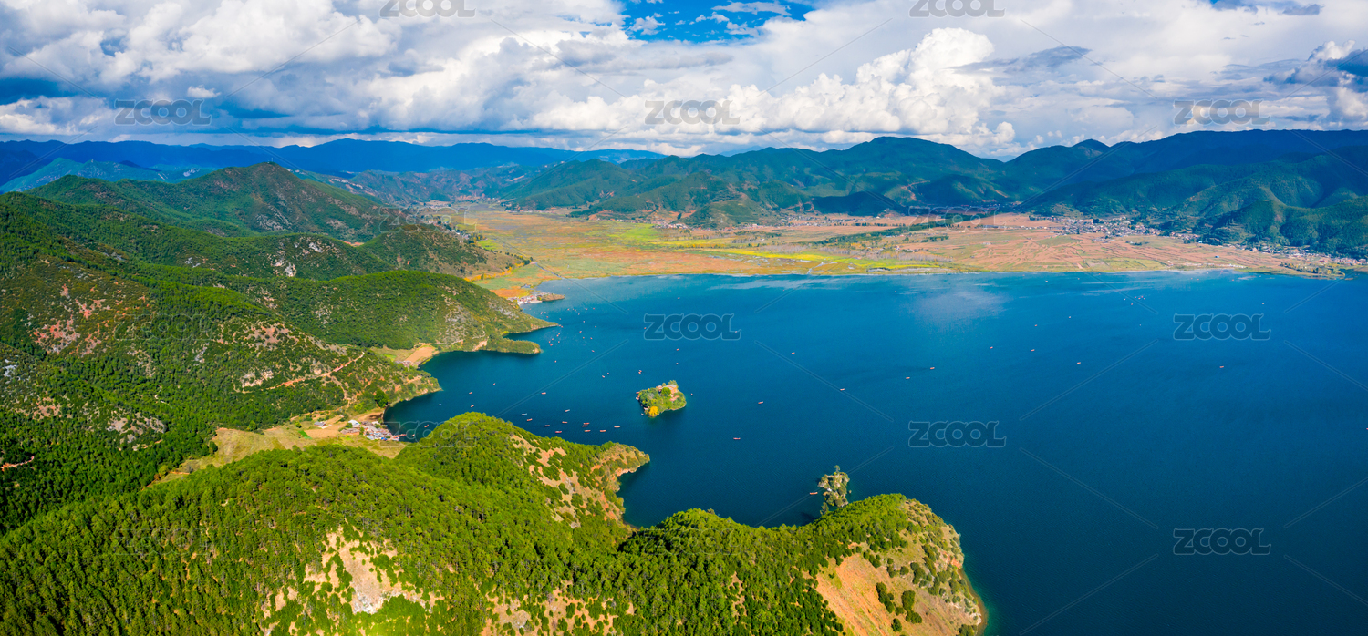 云南,丽江,泸沽湖,四川,彝族,摩梭族,美景,高空,航拍,蓝天