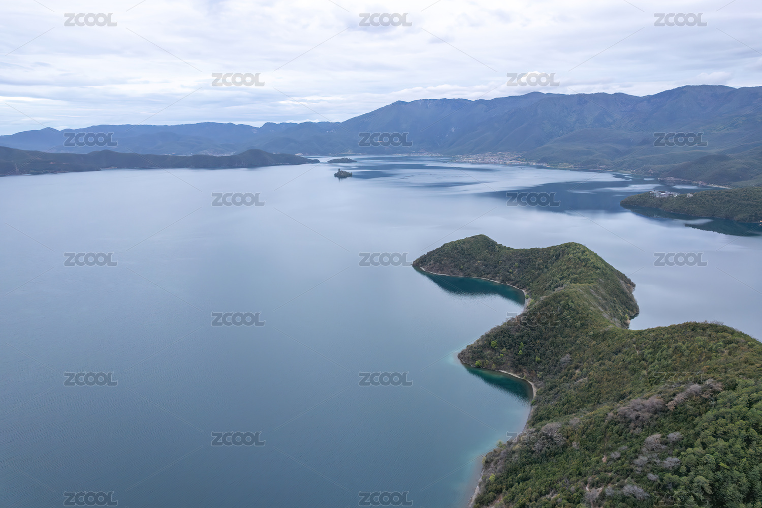 四川泸沽湖王妃岛航拍视角