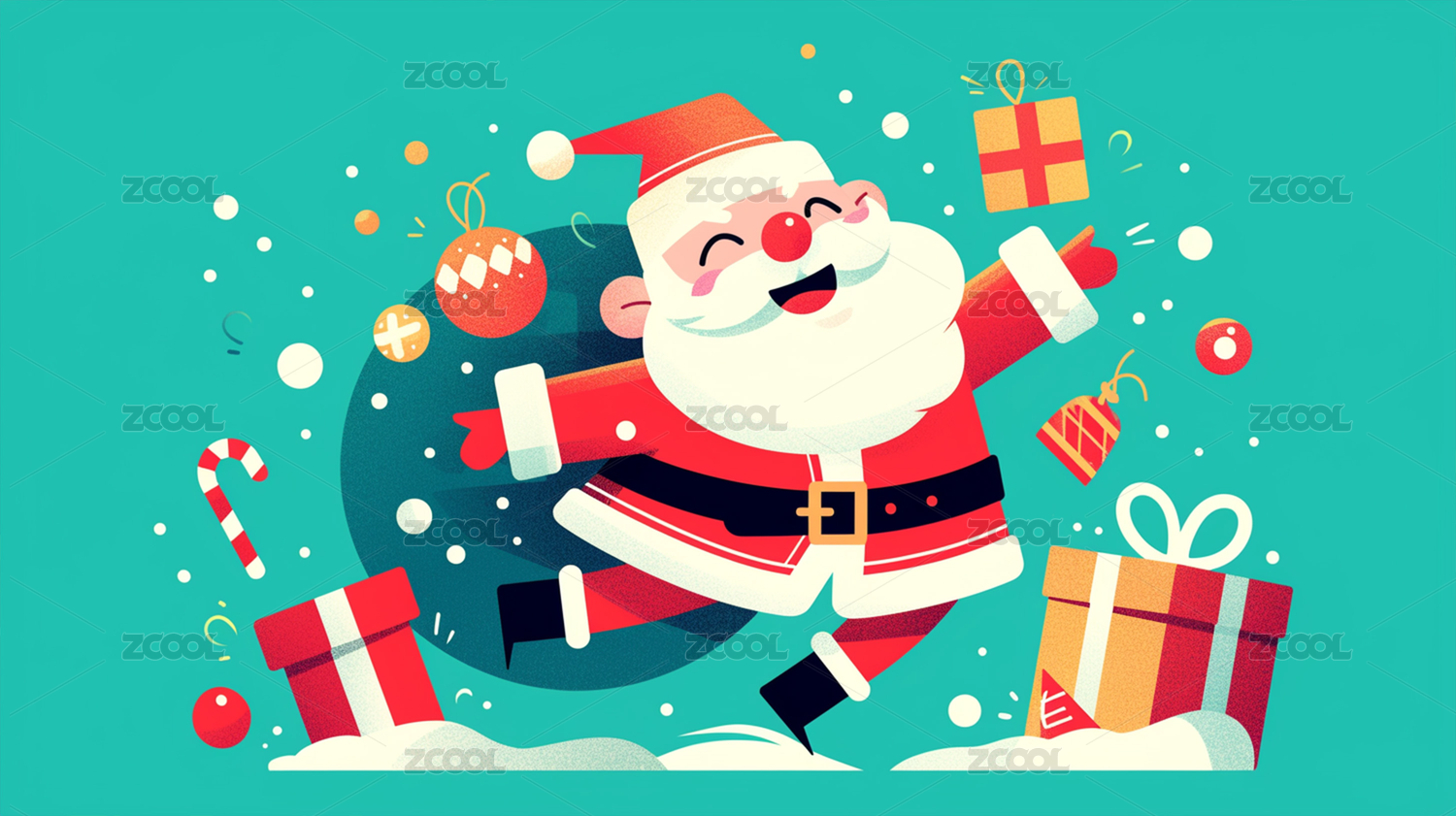开心的奔跑着送礼物的圣诞老人,扁平插画