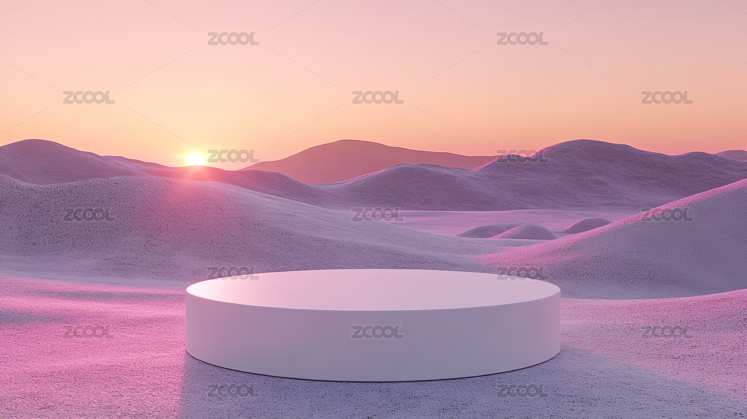 黄色沙漠地形与白色圆形产品展台背景