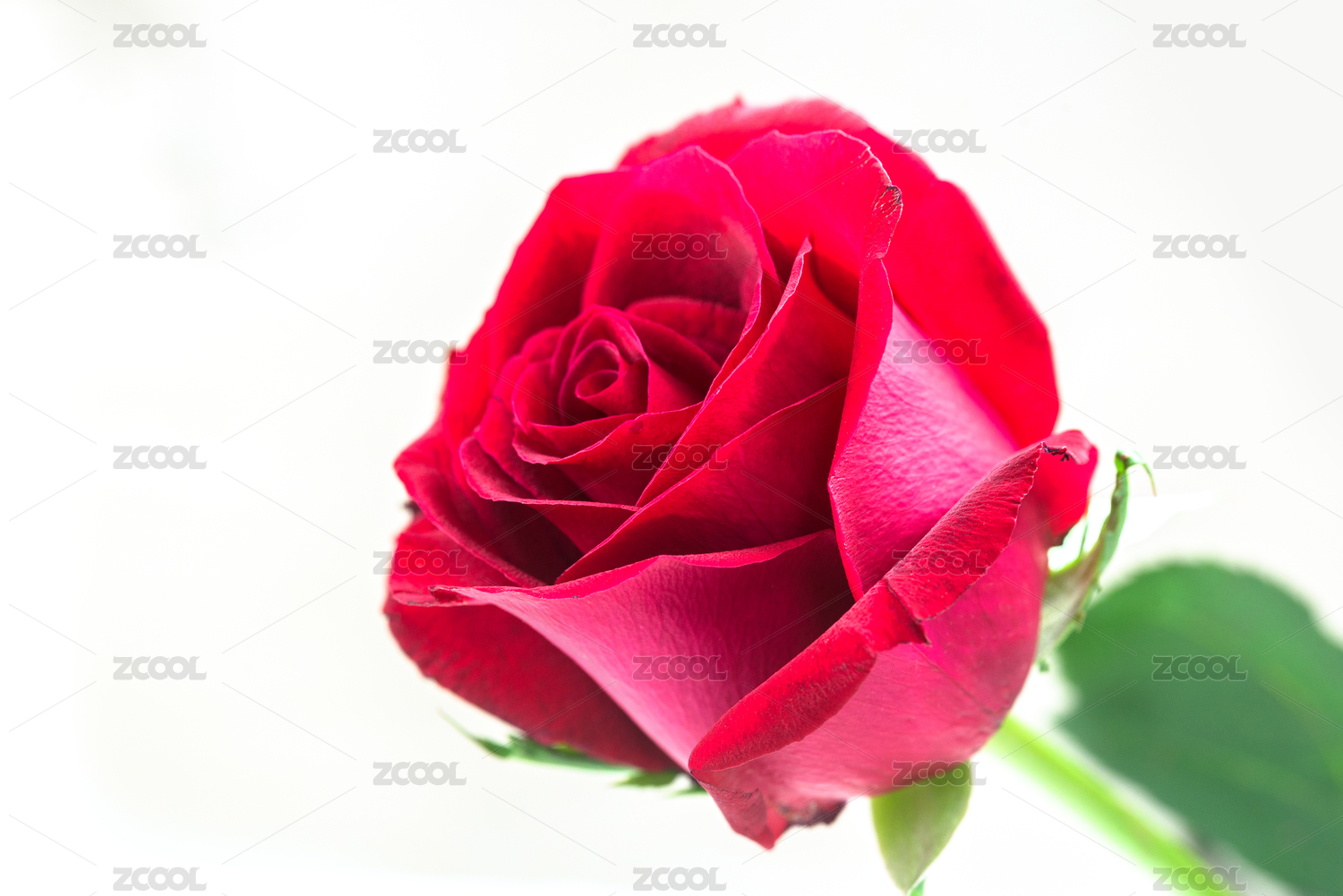 白背景下一朵含苞待放满是露珠的玫瑰花特写
