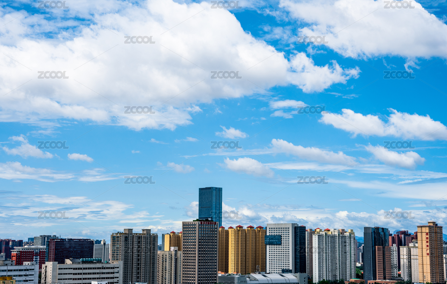 蓝天白云的中国河北燕郊居民楼建筑风光