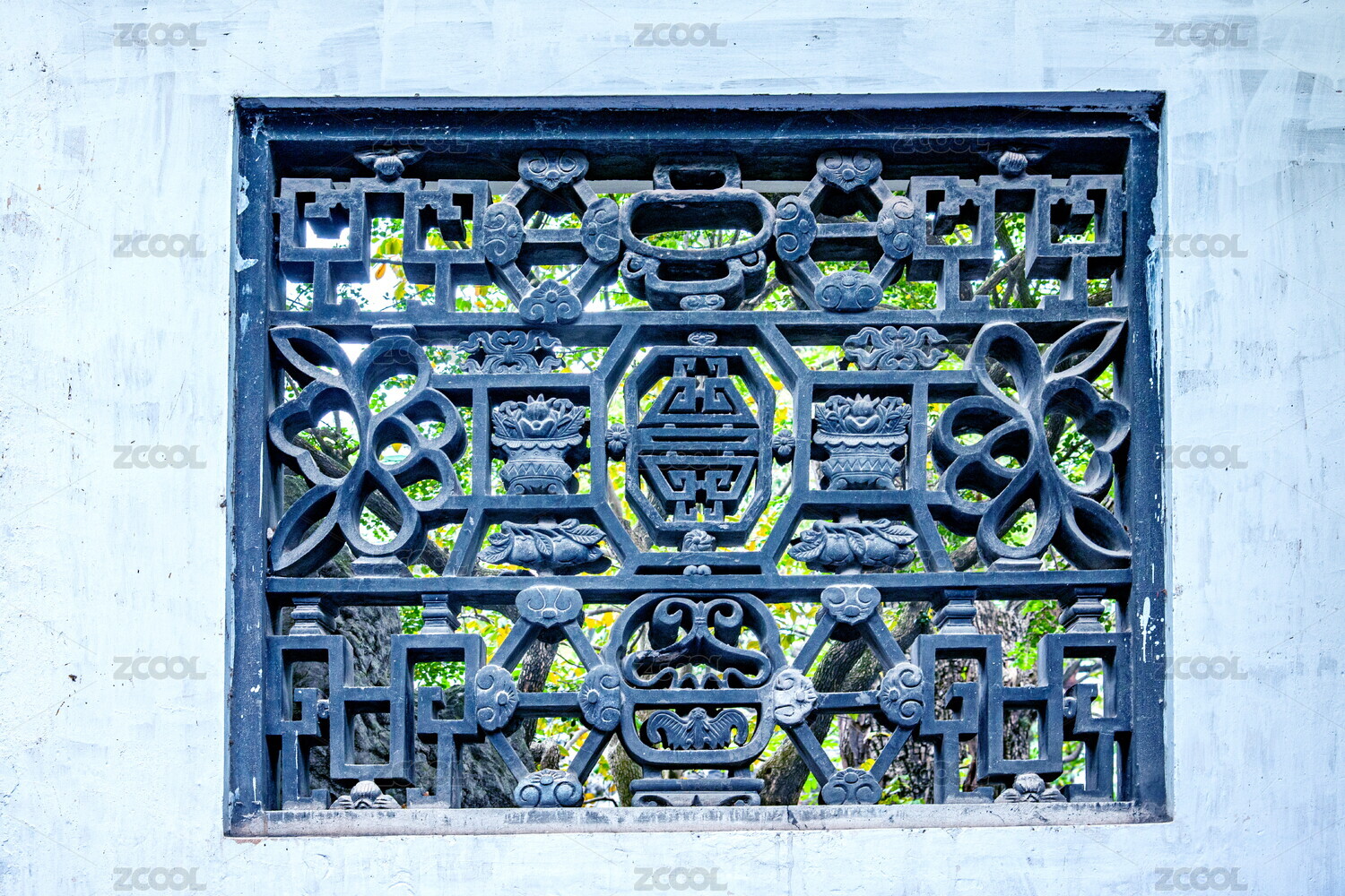 中国山东省潍坊市十笏园中式古典漏花窗园林墙