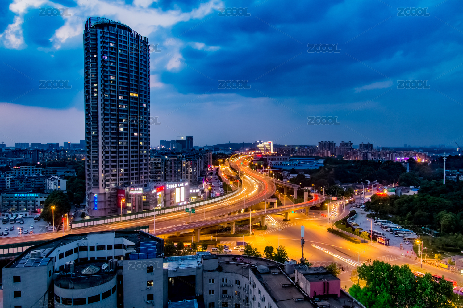 中国江苏省南京市江北区夜晚灯光立交桥建筑