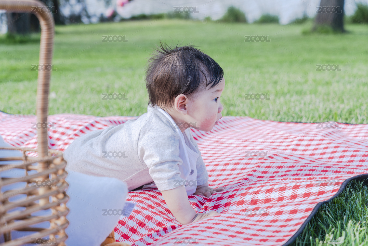 婴儿在野餐垫上学匍匐行
