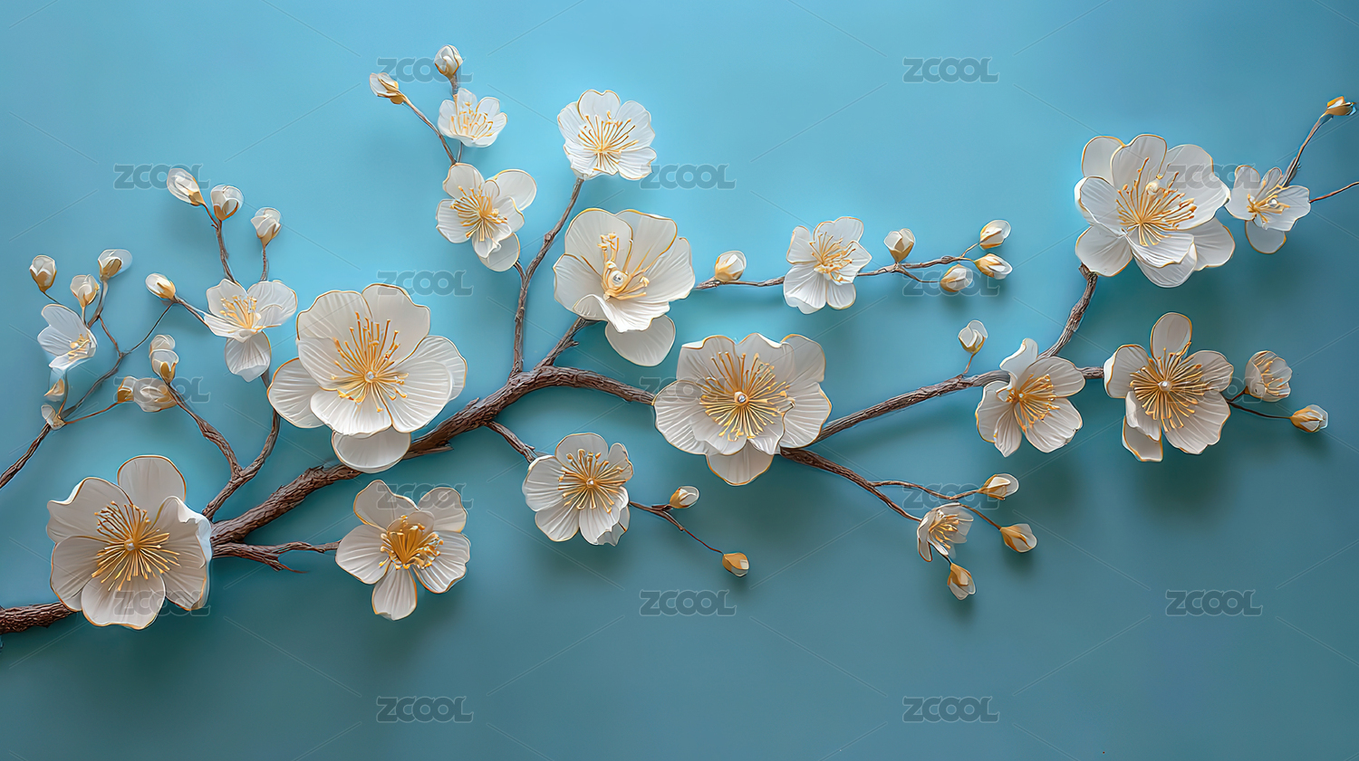 浅蓝色背景上绽放的白色花朵