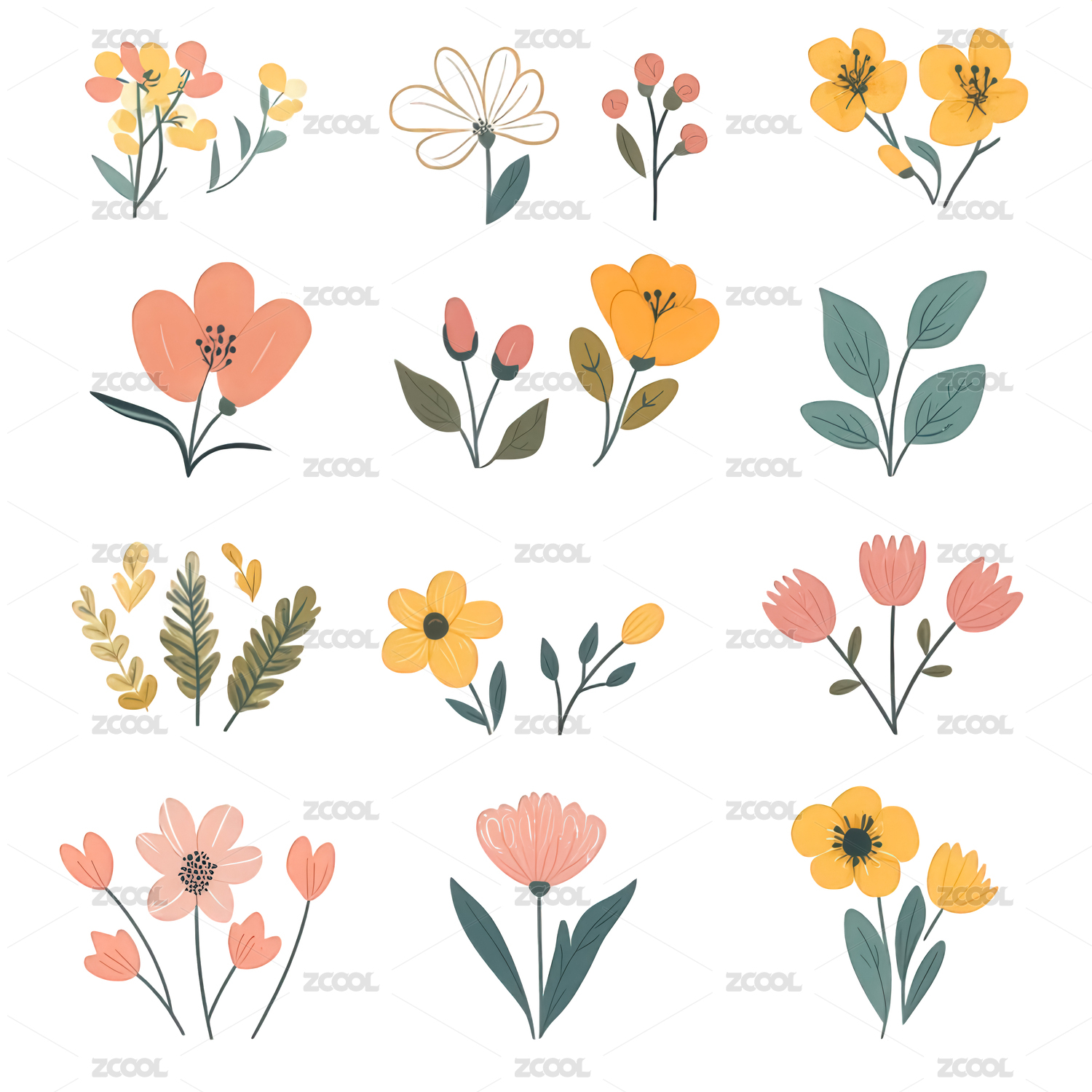 可爱花卉插图合集