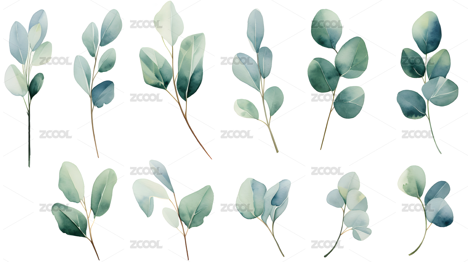 数码水彩尤加利叶装饰抽象图形海报网页背景