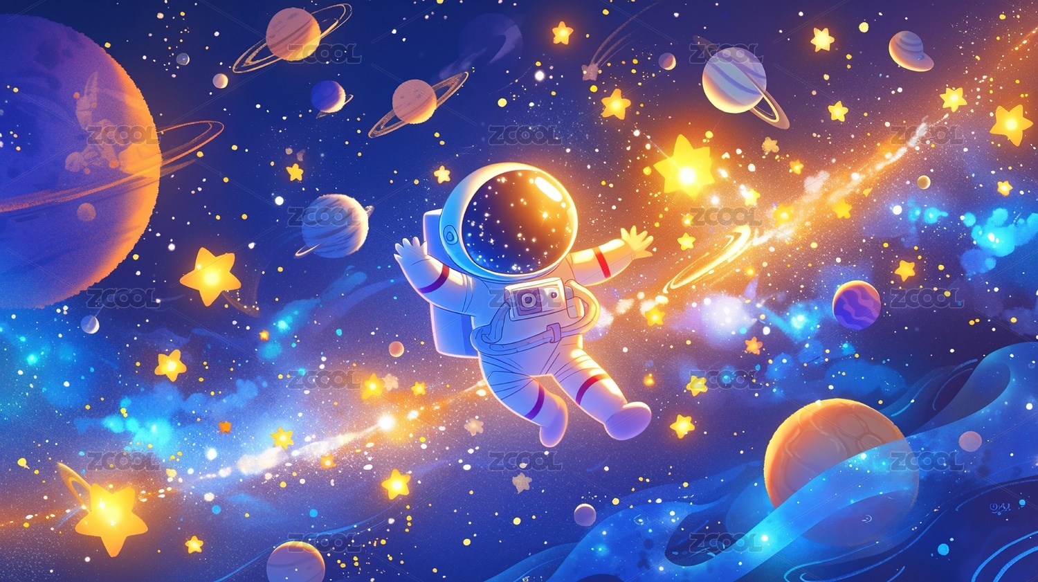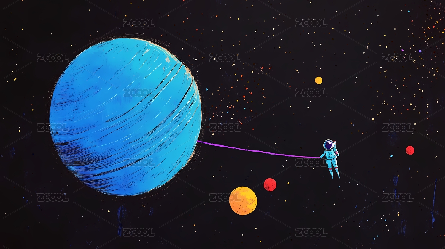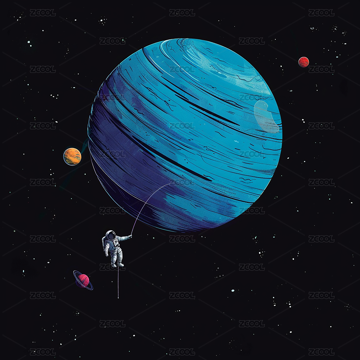 蓝色,气体,行星,太空,恒星,宇航员,艺术,绘图,插画,天空