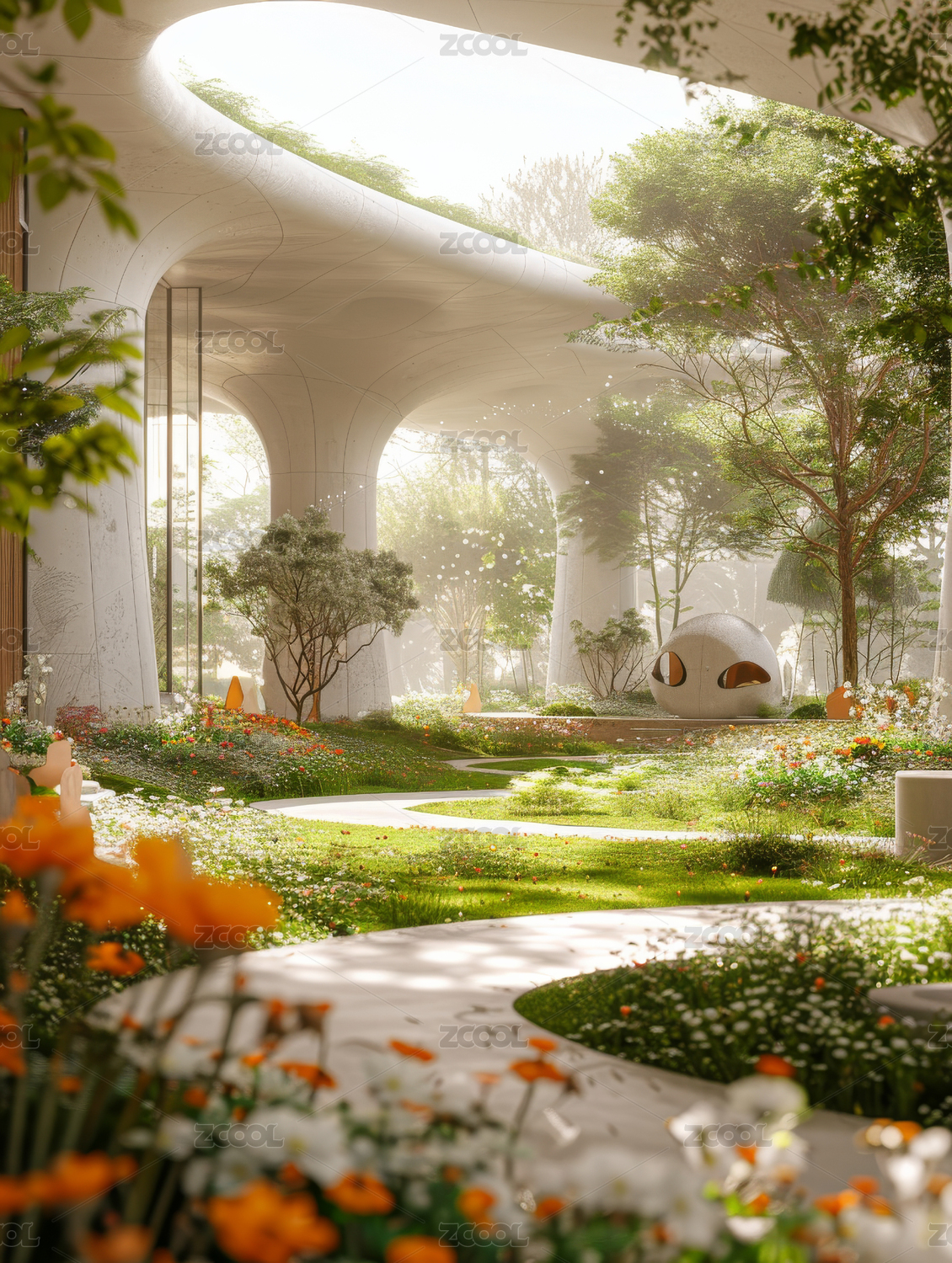 未来,公园,建筑,景观,植物,温暖,环保,绿化,阳光,渲染