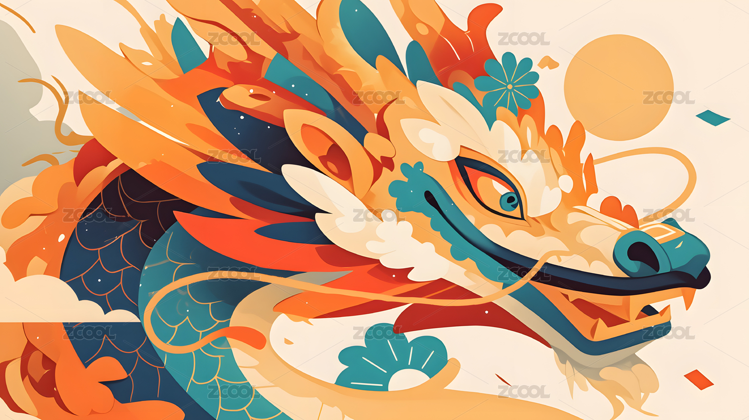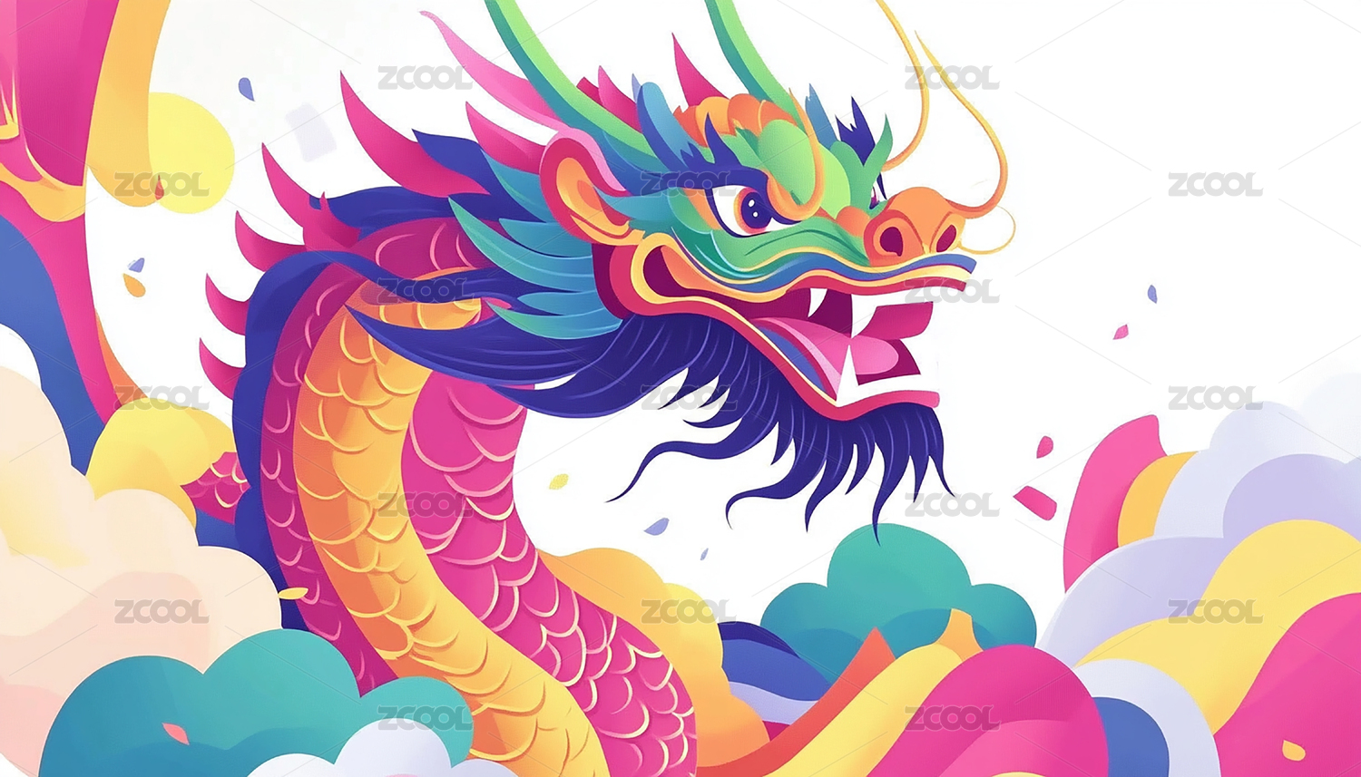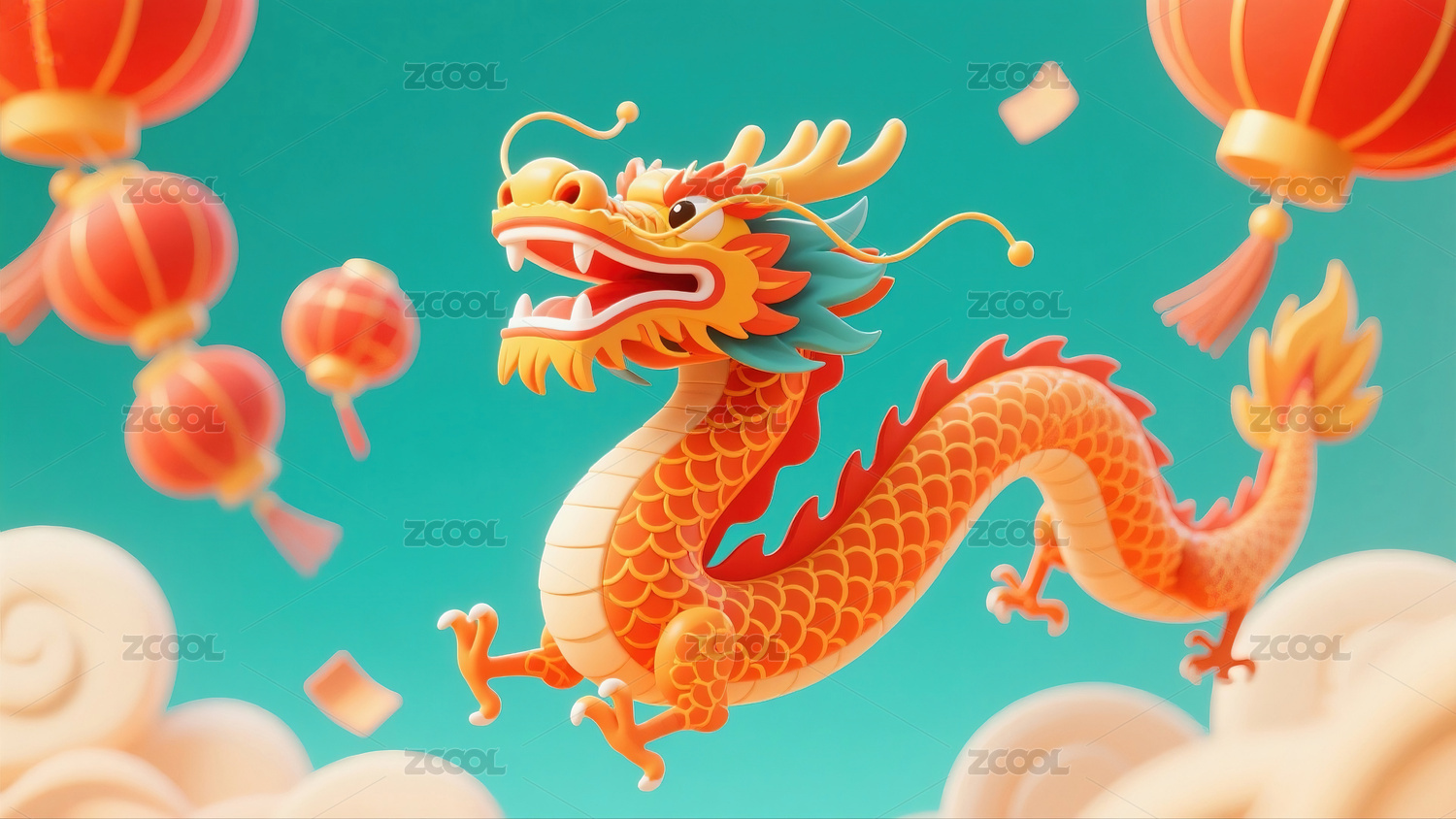 龙,梦幻,神话,图案,插画,气球,炫彩,国风
