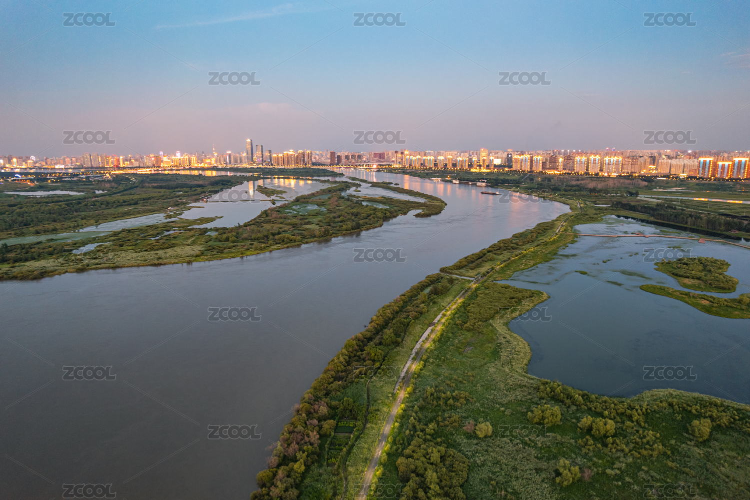 湖北武汉府河水位上涨傍晚时分