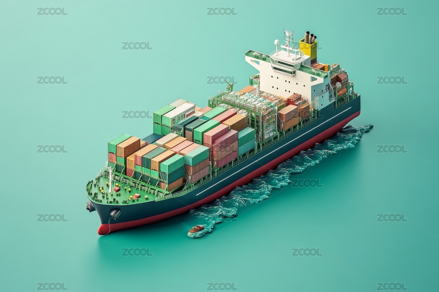大海轮船轮渡货运商业运输船舶航海出口插画