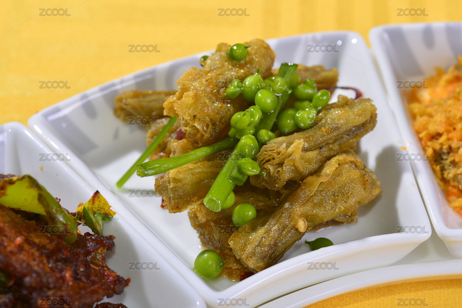 中国菜西安菜美食特写效果放大豌豆鲜菇