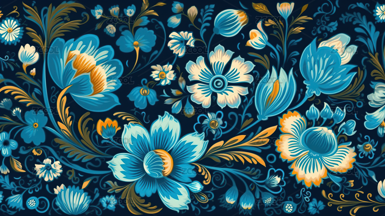 橙蓝花卉图案