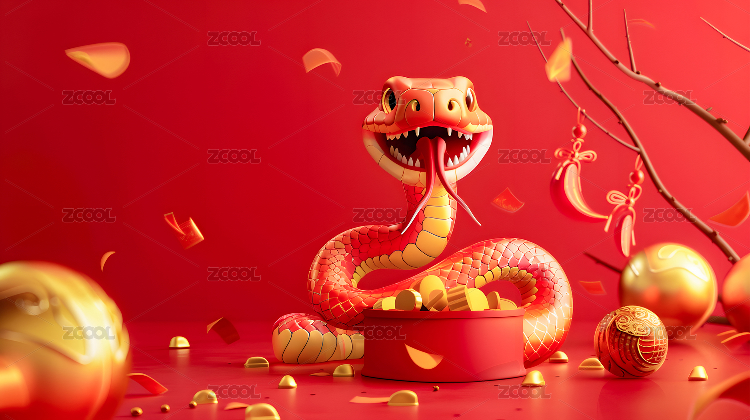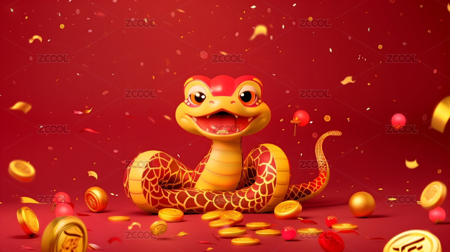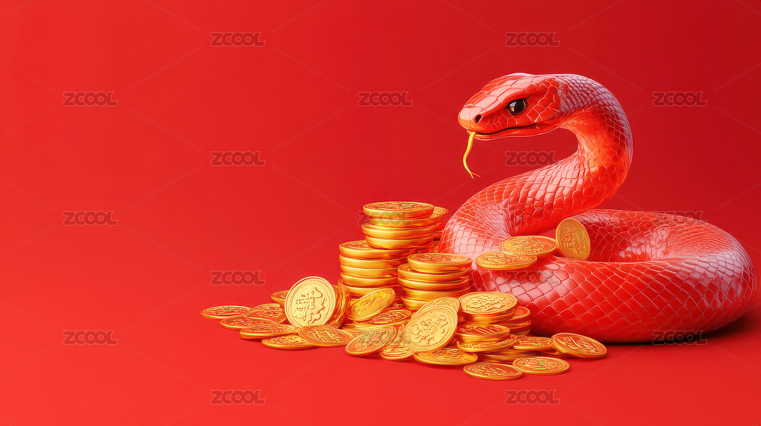 金蛇,金币,红色背景,财富,幸运,投资,金融,成功,繁荣,宝藏