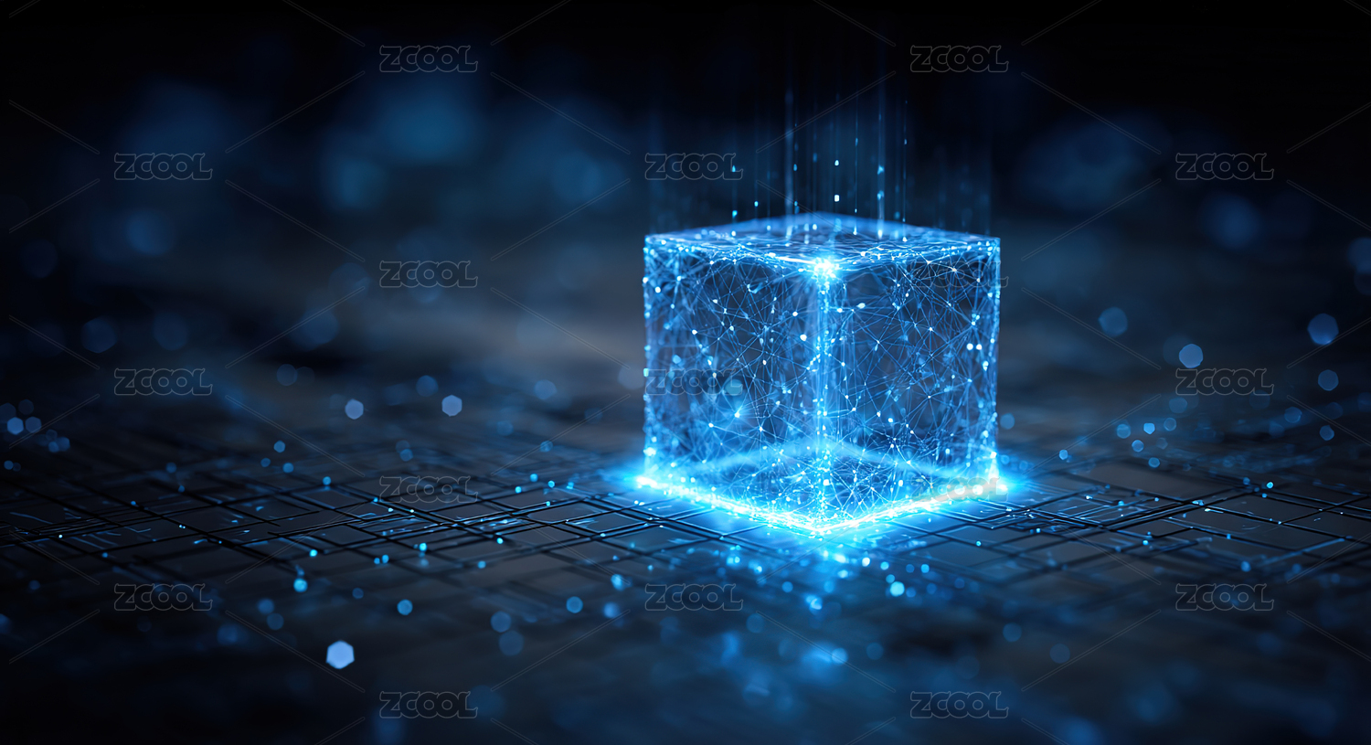 发光立方体与电路板的科技场景