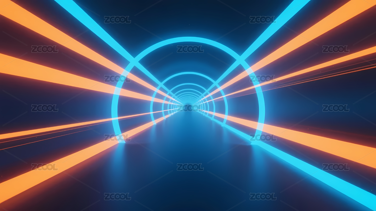黑暗隧道发光照明抽象技术速度概念三维渲染