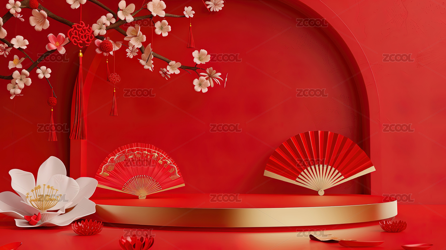 喜庆的中国红节日主题电商产品展示背景