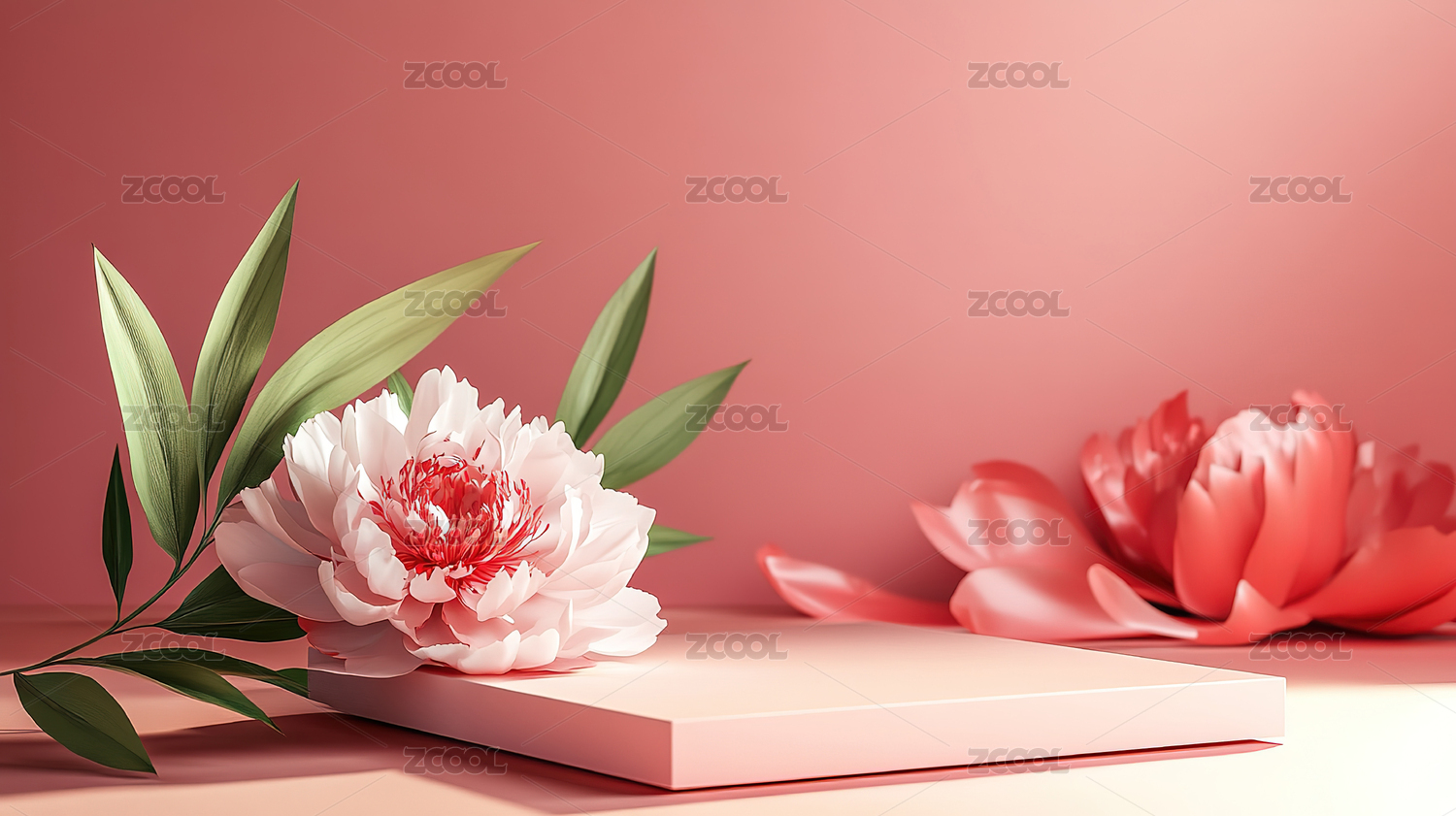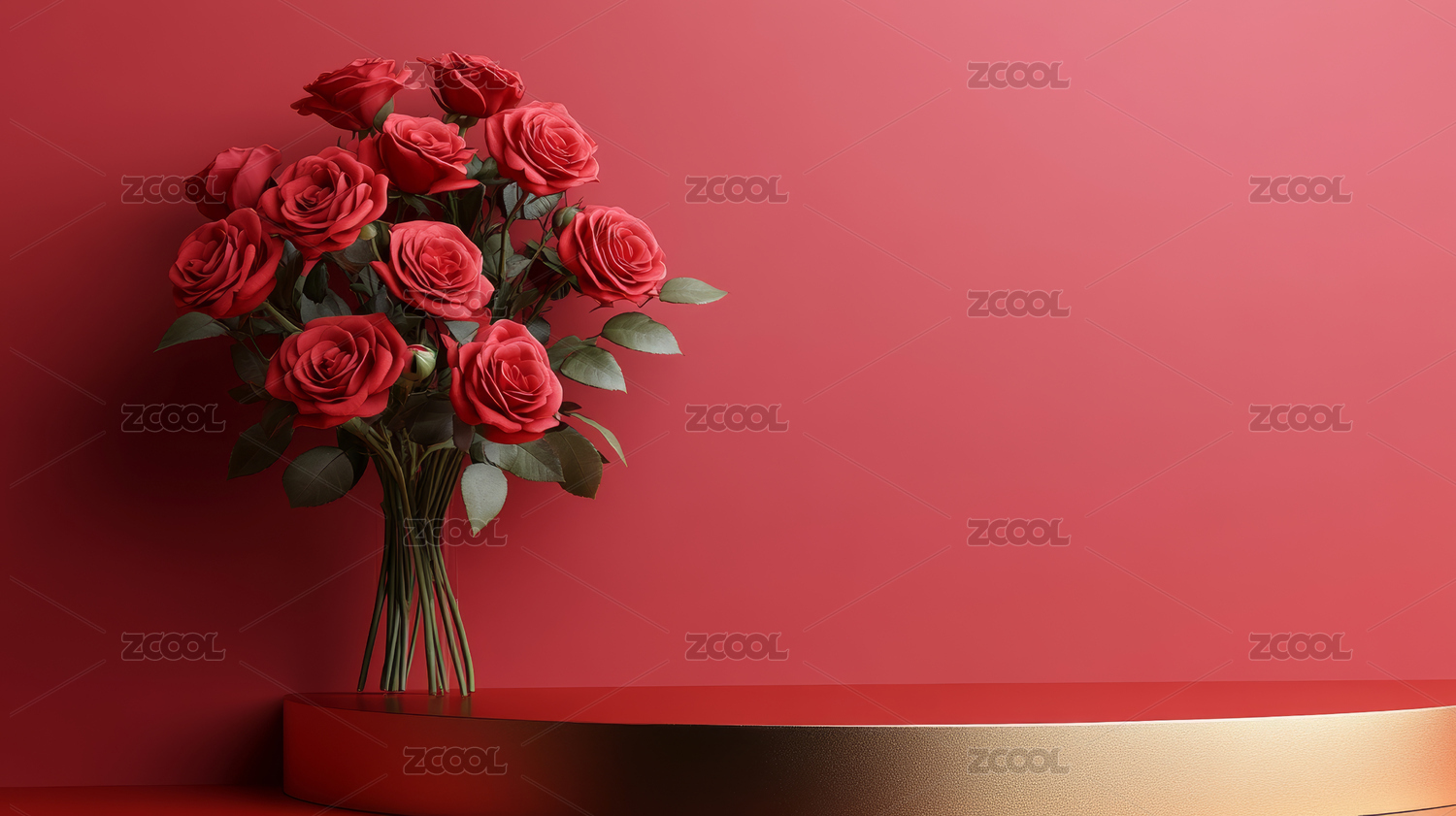红色玫瑰花电商产品展台背景