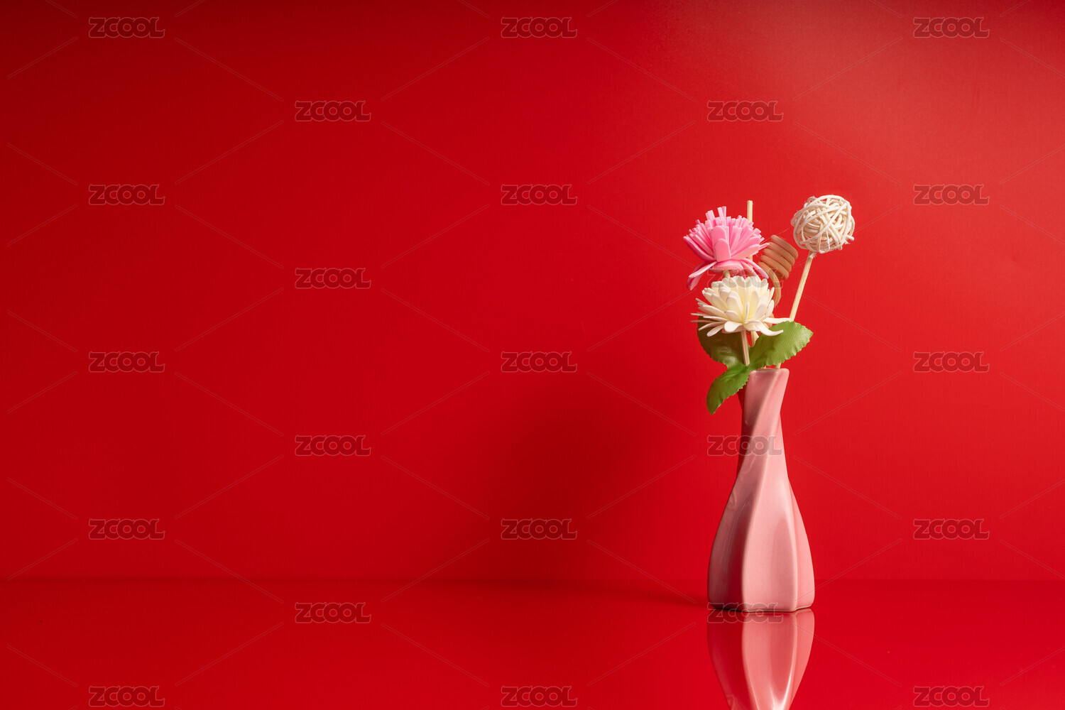 粉红色背景下桌子上的花朵特写镜头