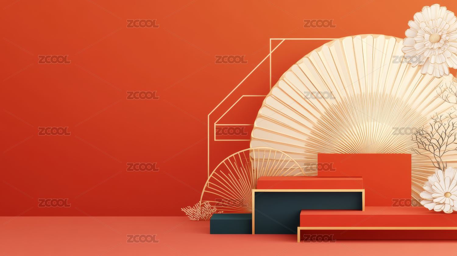 红色背景节日主题电商产品展台