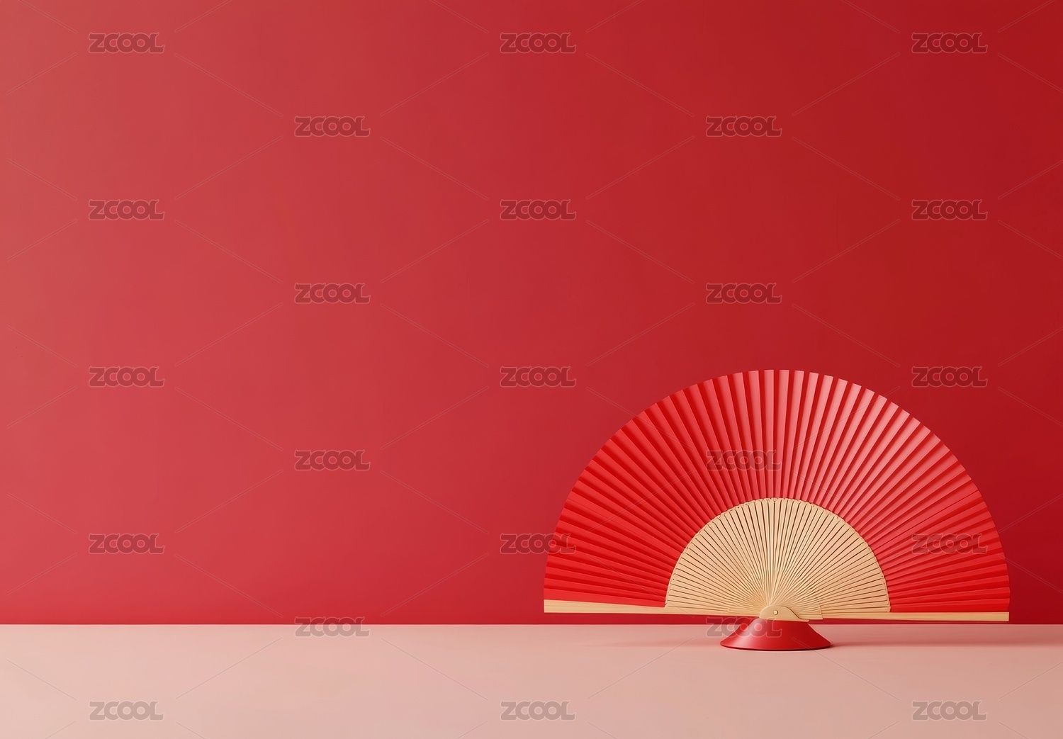 红色节日氛围纸扇礼盒场景