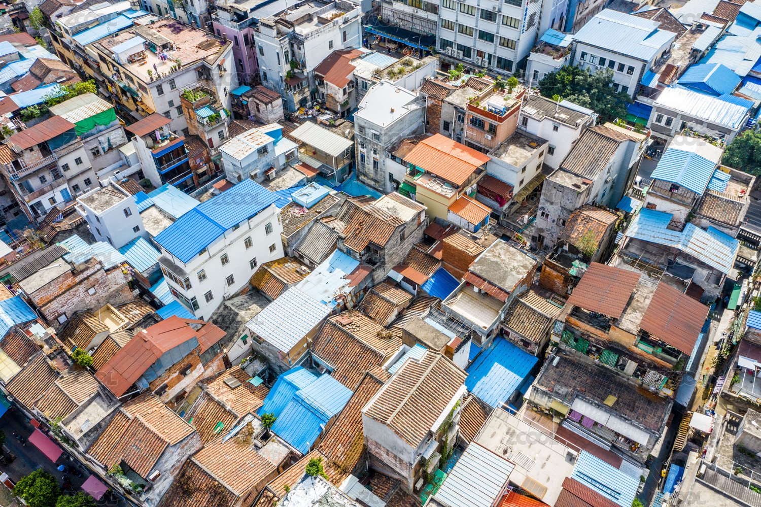 中国广州海珠城中村密集拥挤老旧建筑