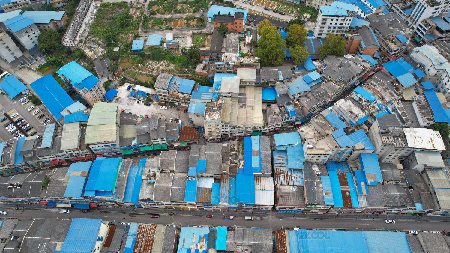 城乡结合部棚户区鸟瞰图