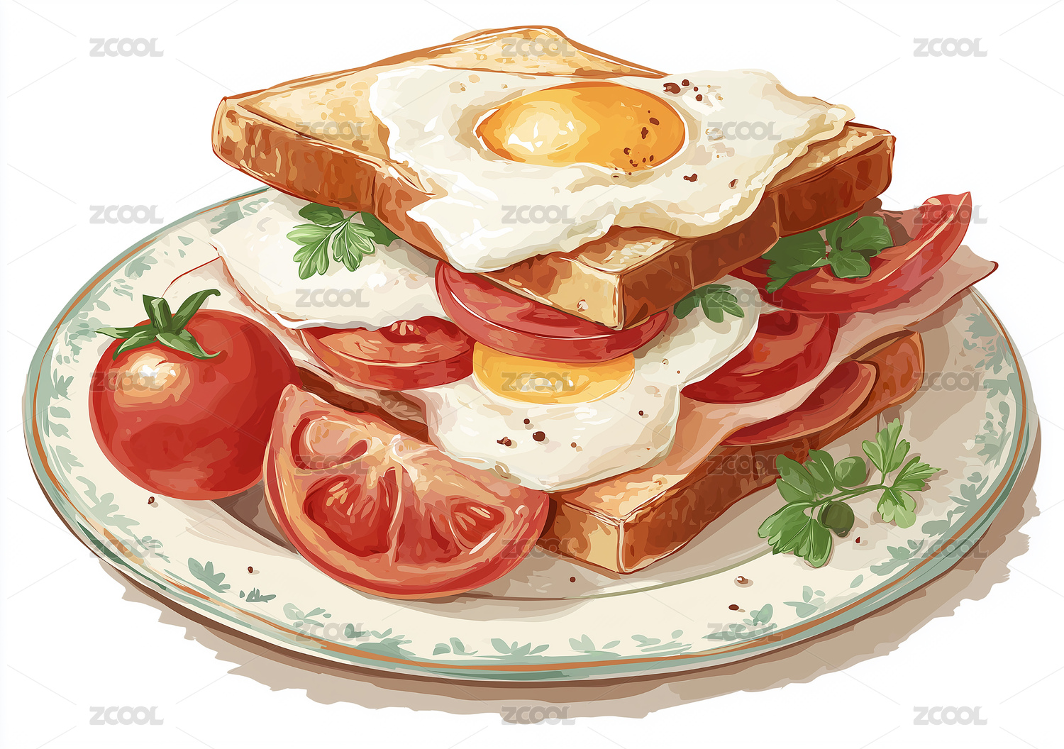 吐司,早餐,下午茶,元素,食物,美食,煎鸡蛋,蛋,培根,健康