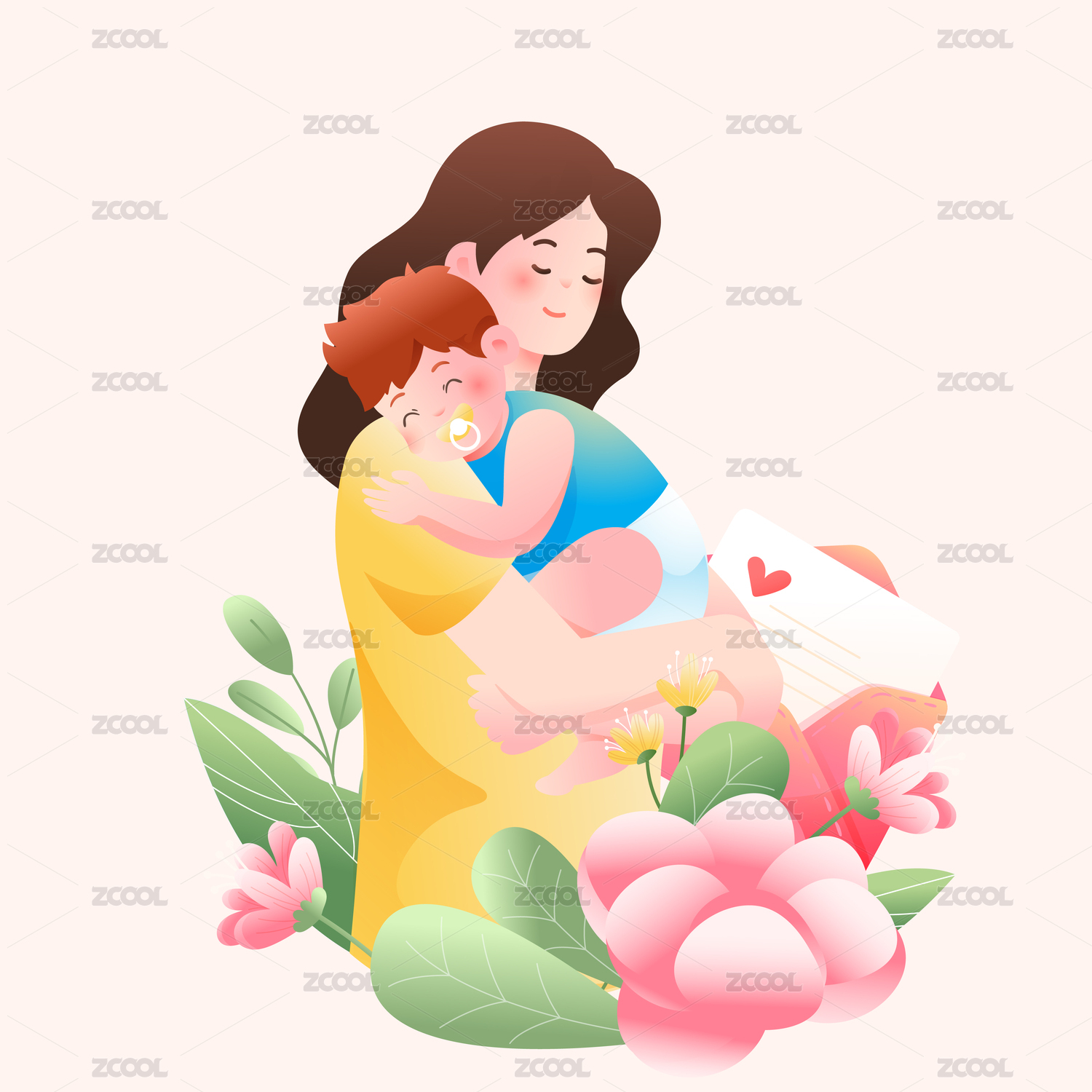 相拥的母子母亲节插画