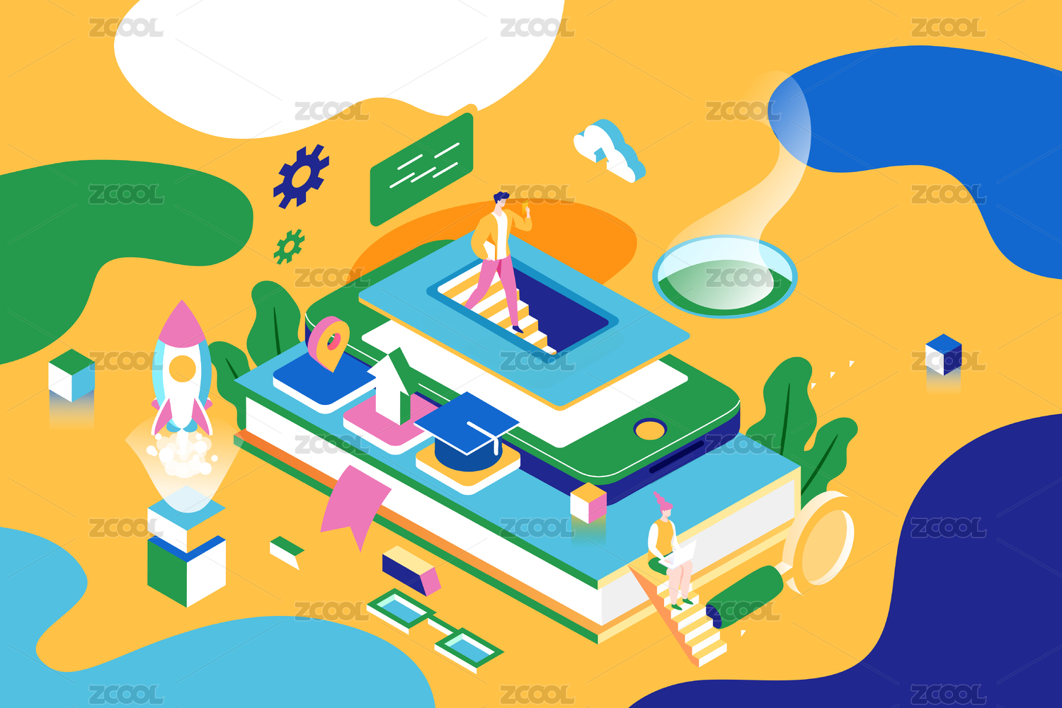 等距在线教育矢量插画
