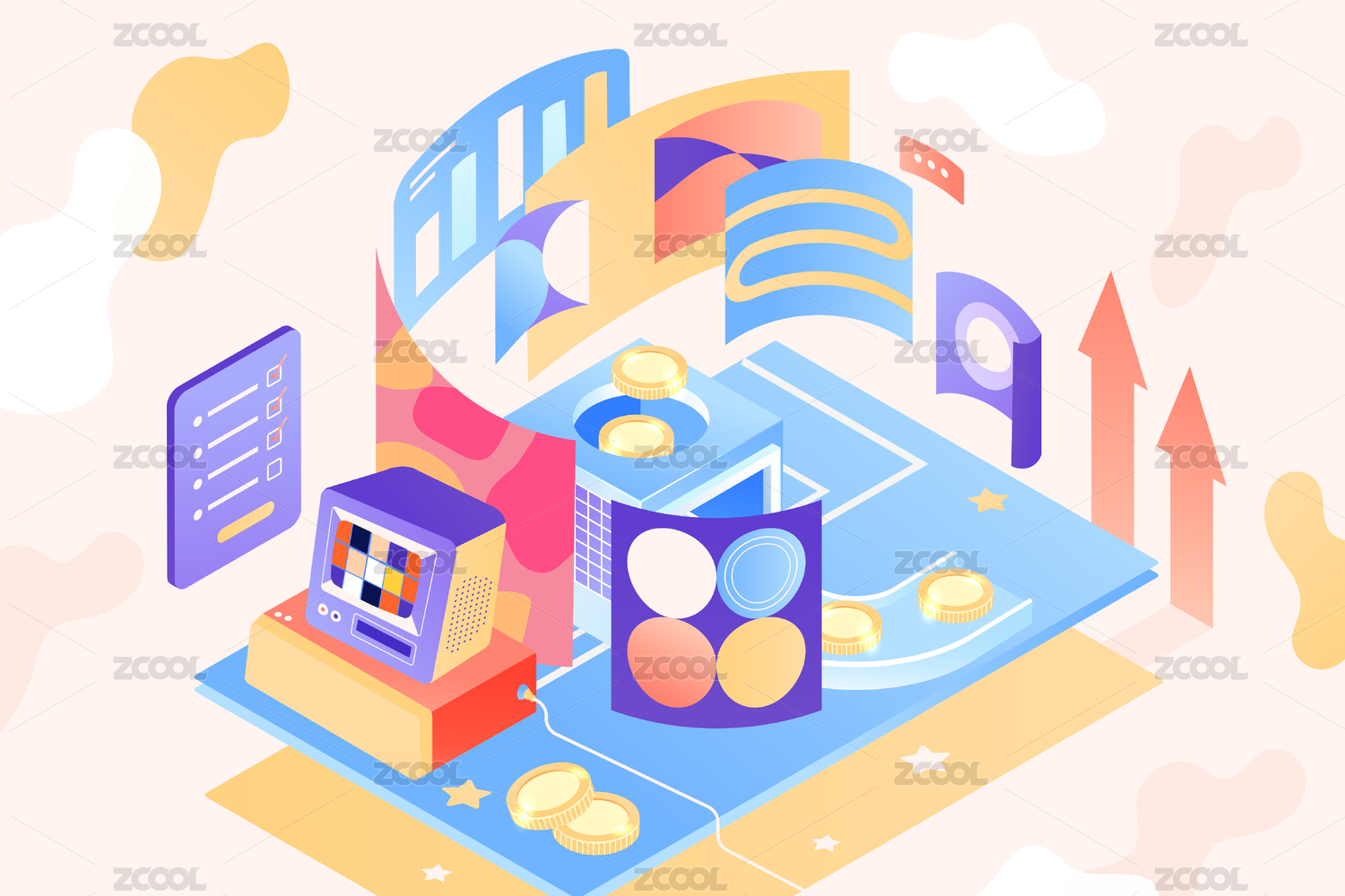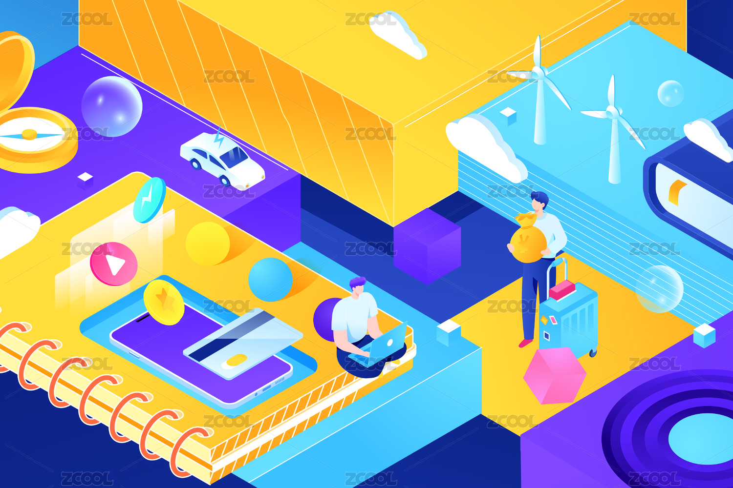 2.5D等距电商理财矢量插画