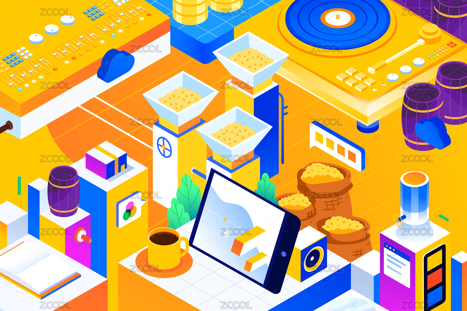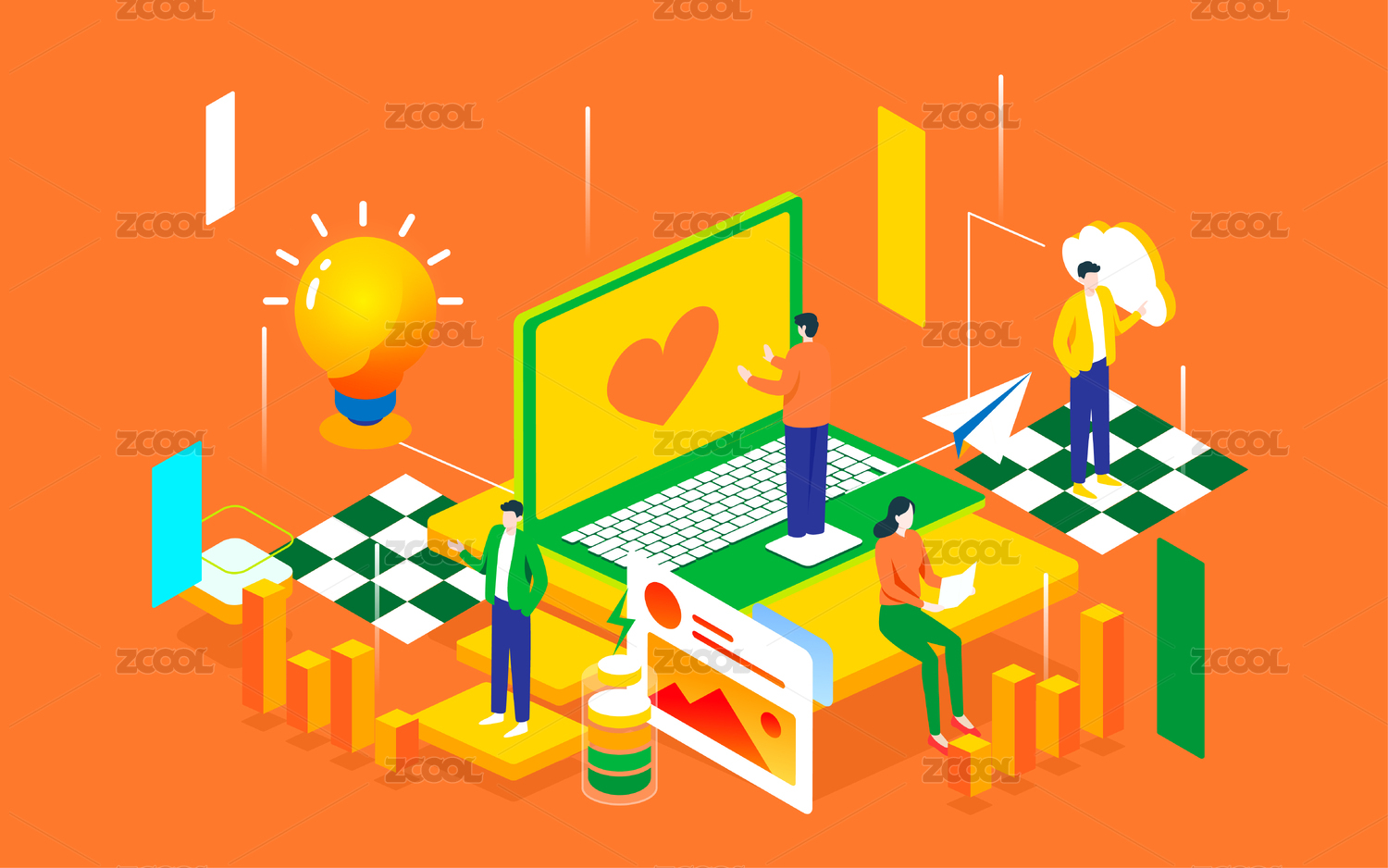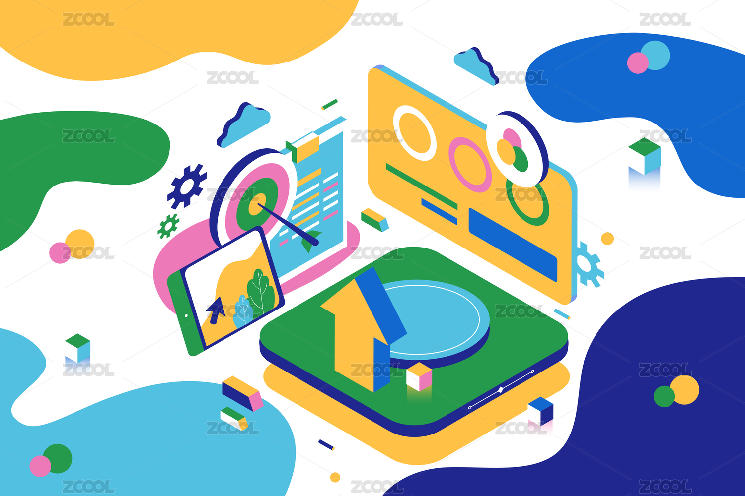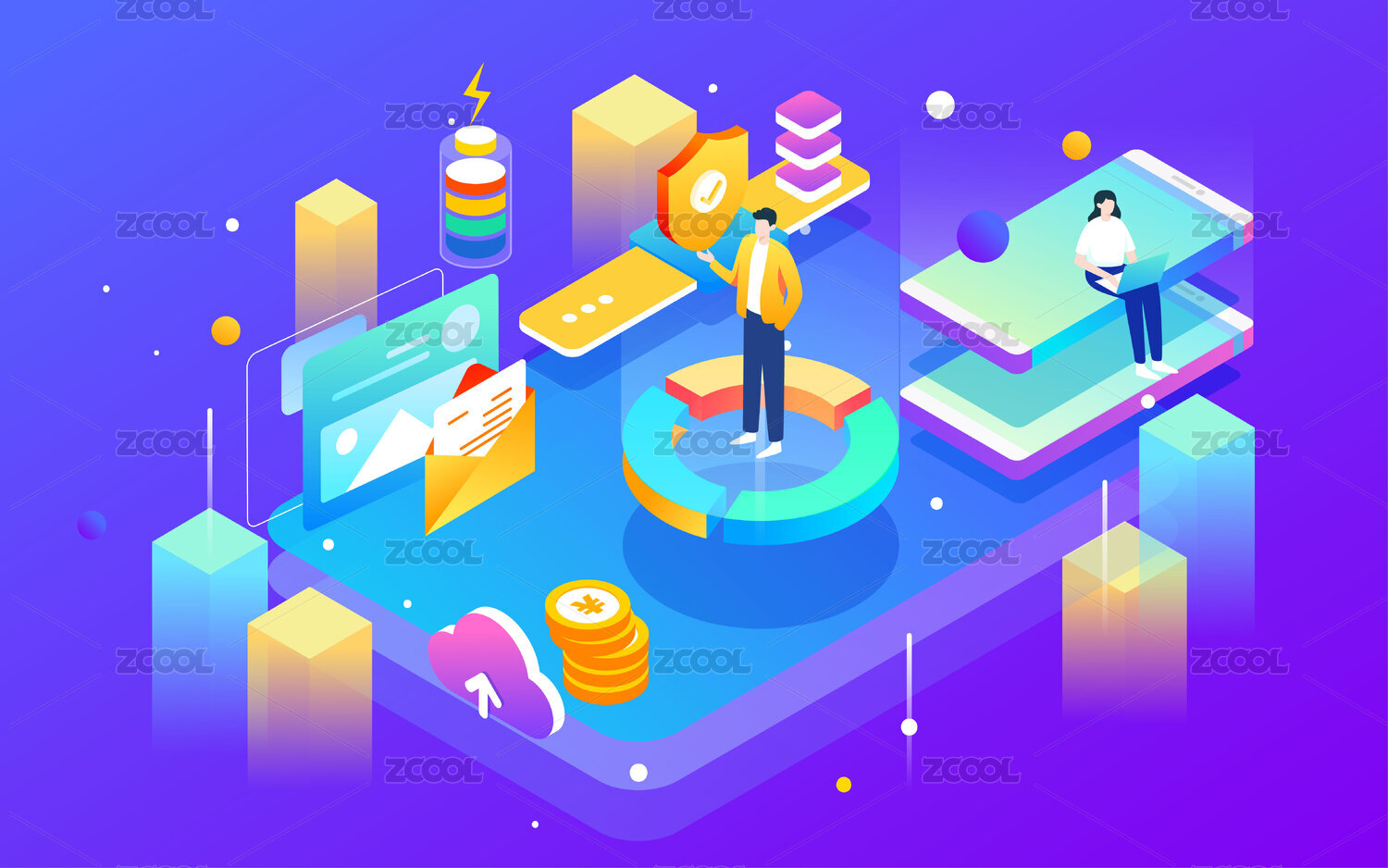 等距商务科技矢量插画