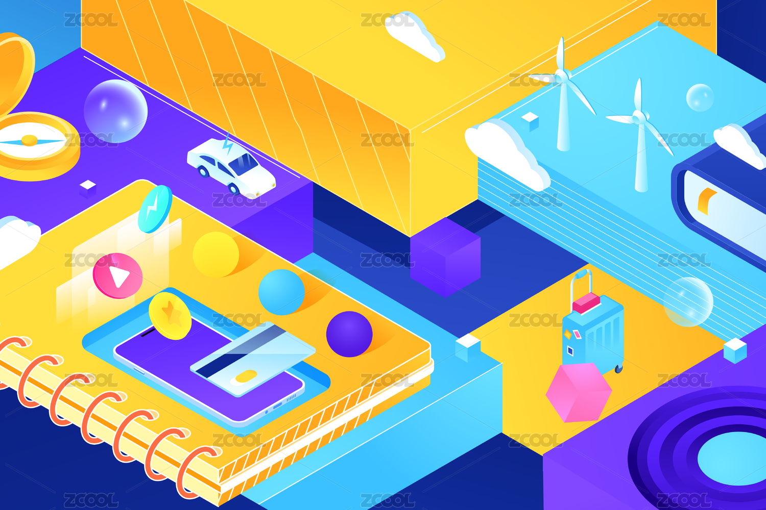 矢量,卡通,渐变,扁平,插画,插图,背景,元素,等距,25D