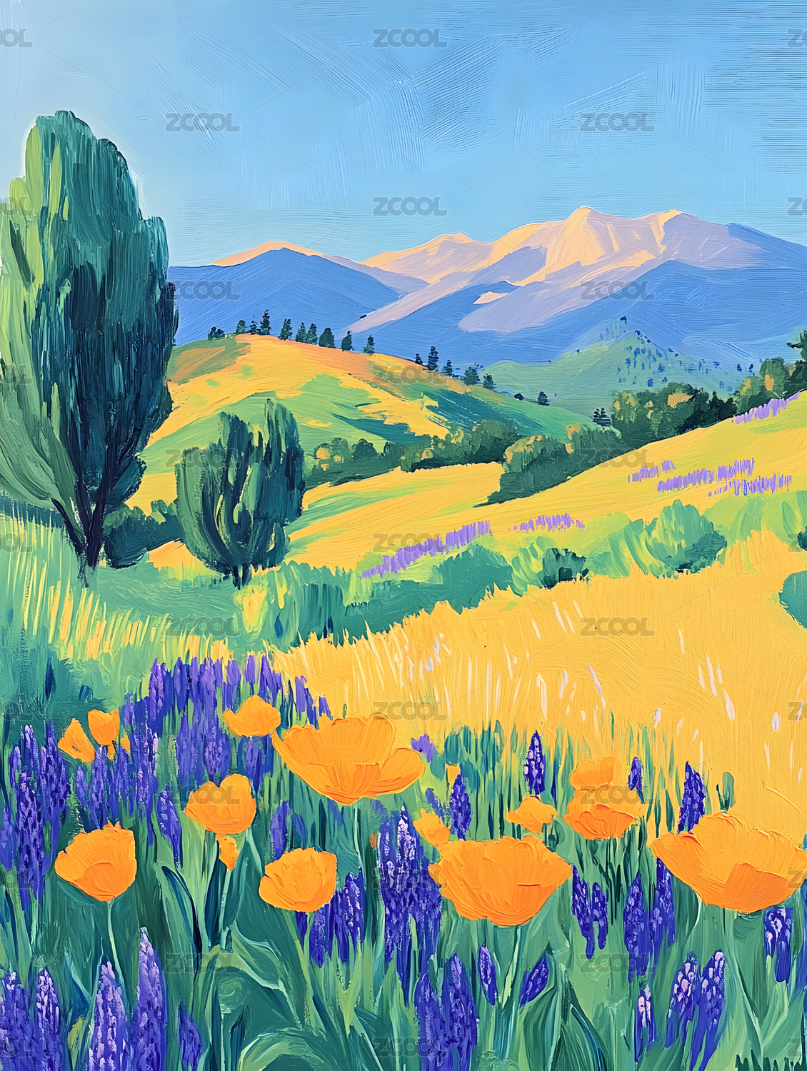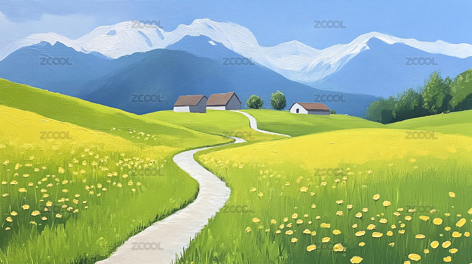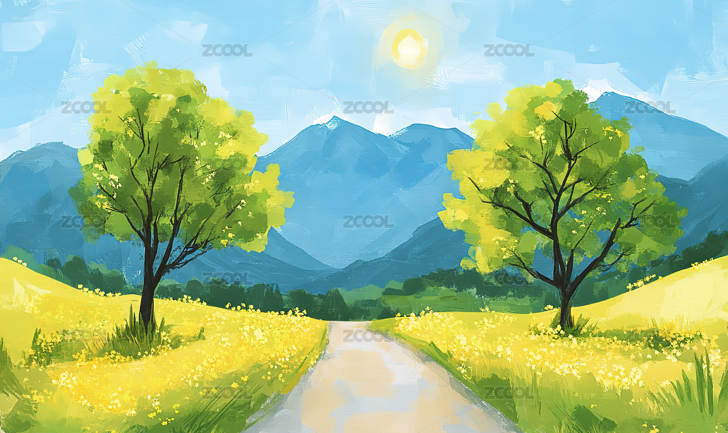油画风春天风景插画