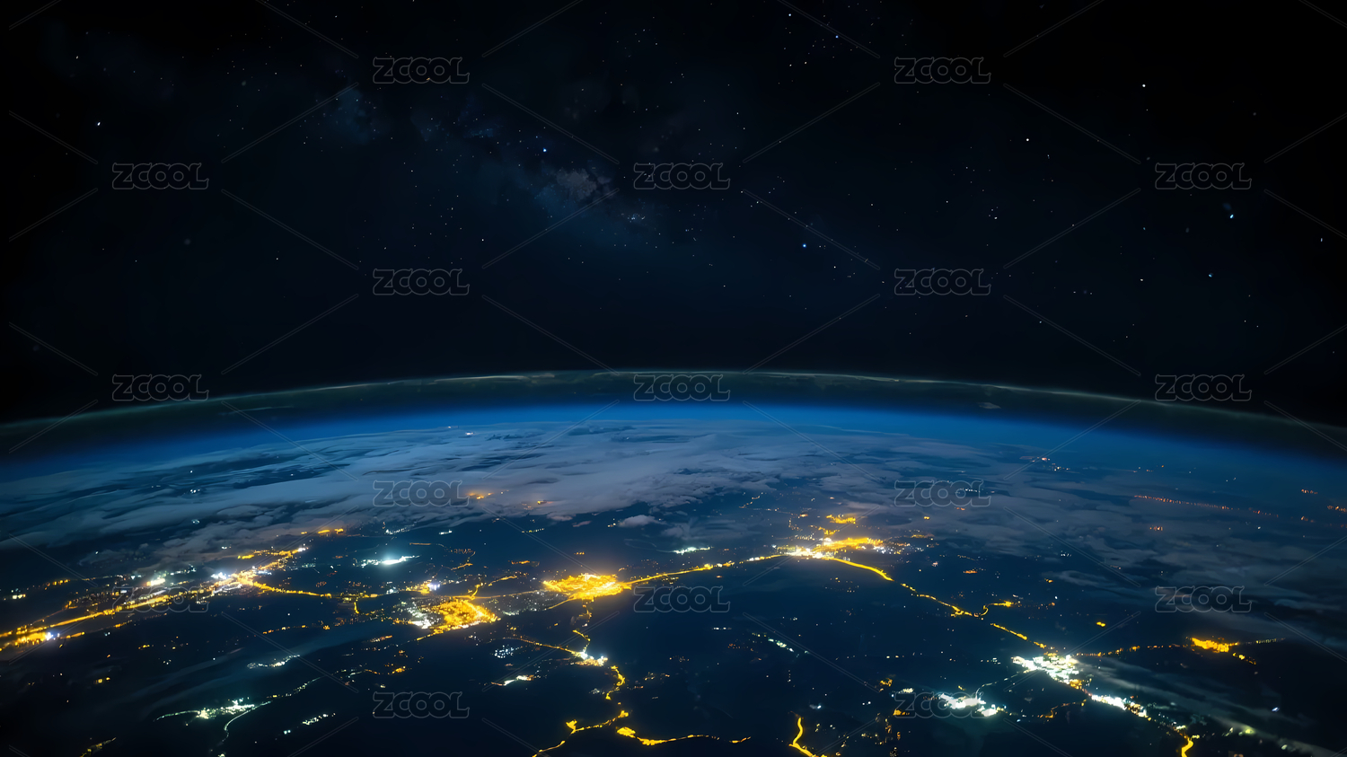 太空俯视地球美丽景象宇宙蓝色科技感背景