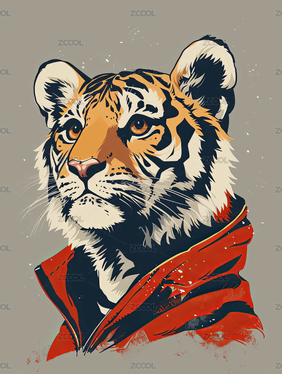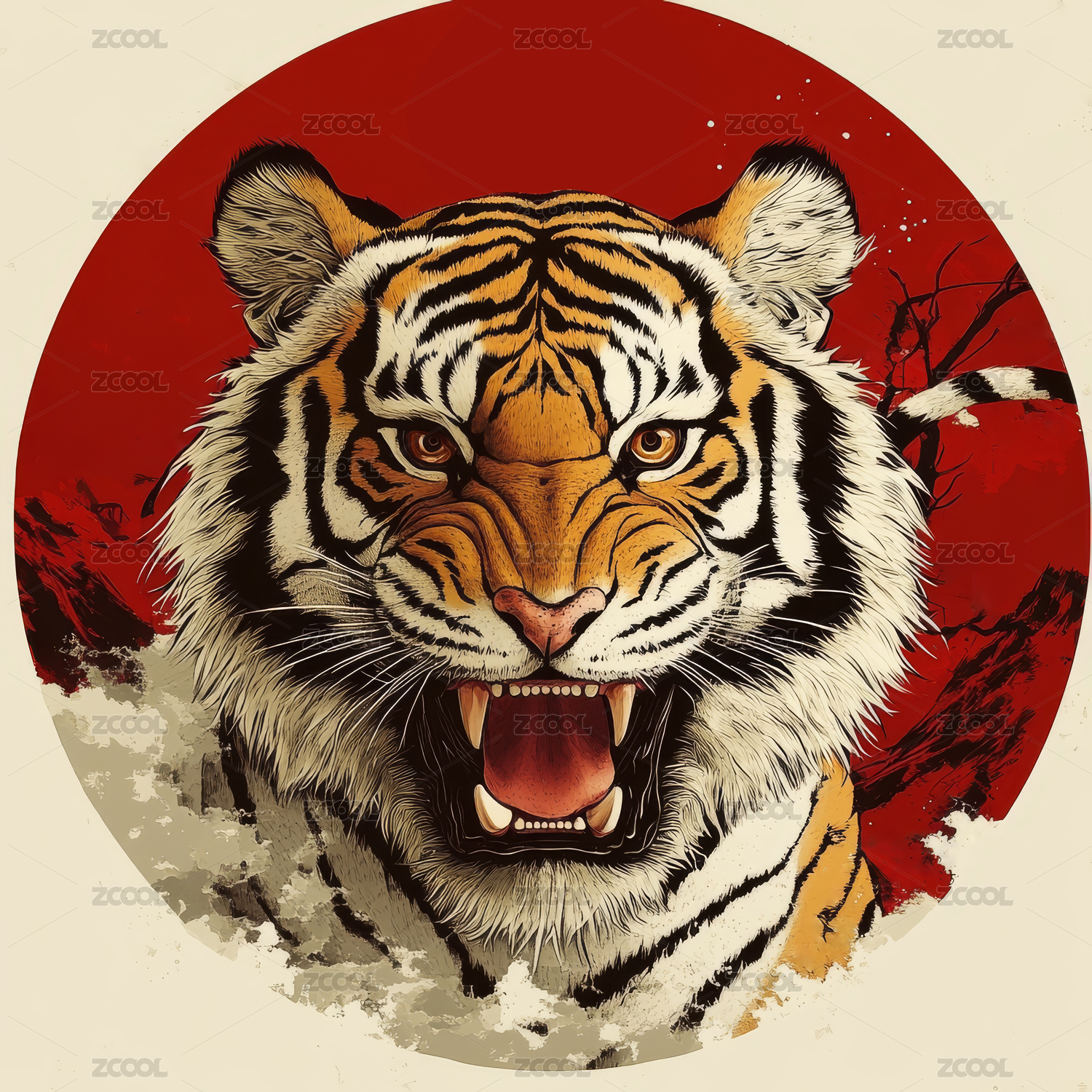 国潮虎十二生肖潮流中国风印花装饰纹样图案