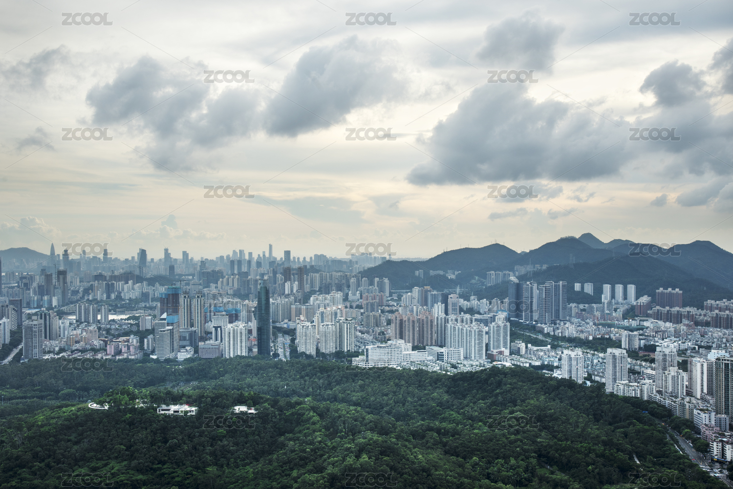 深圳南山公园望CBD摩天大楼繁华都市风光