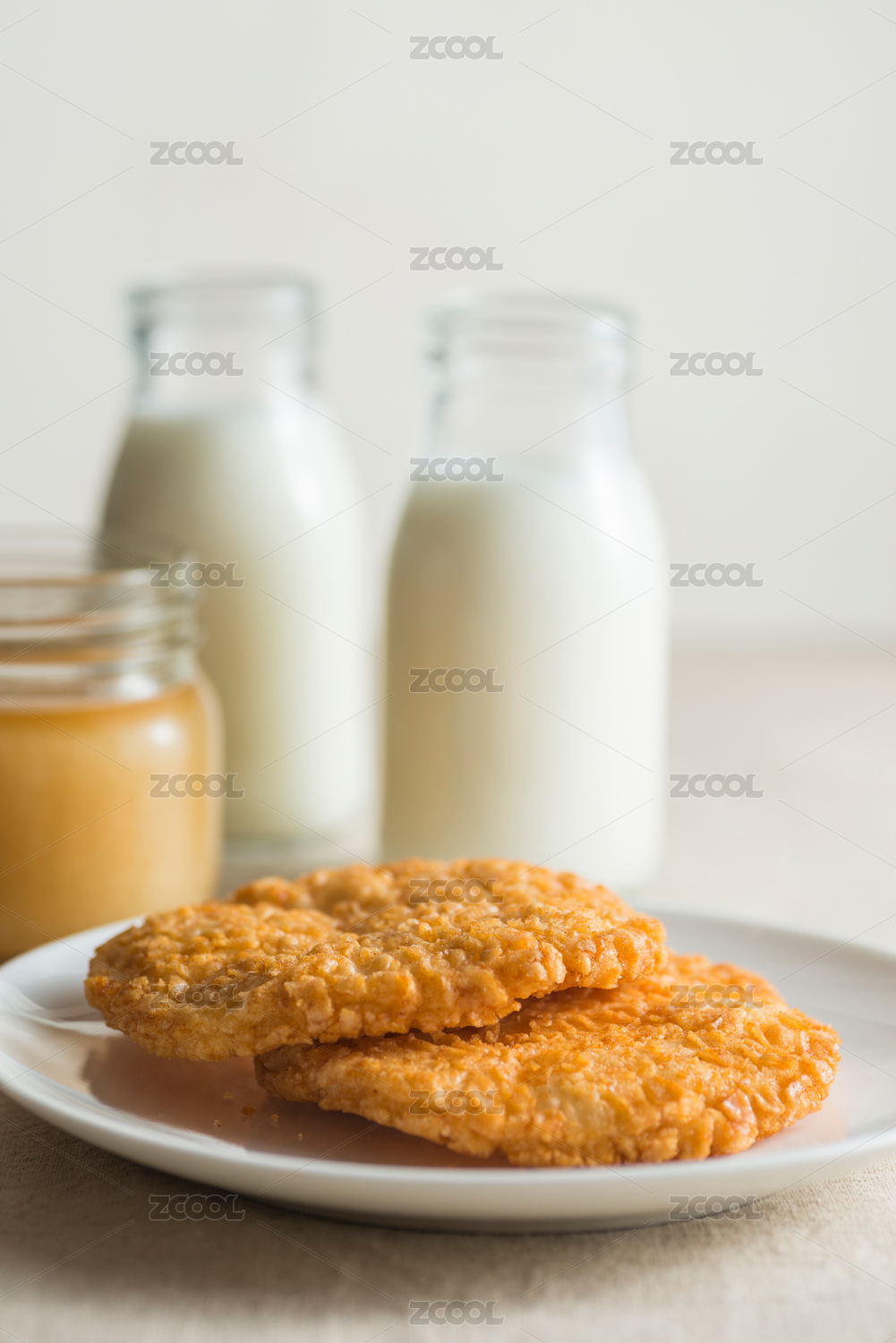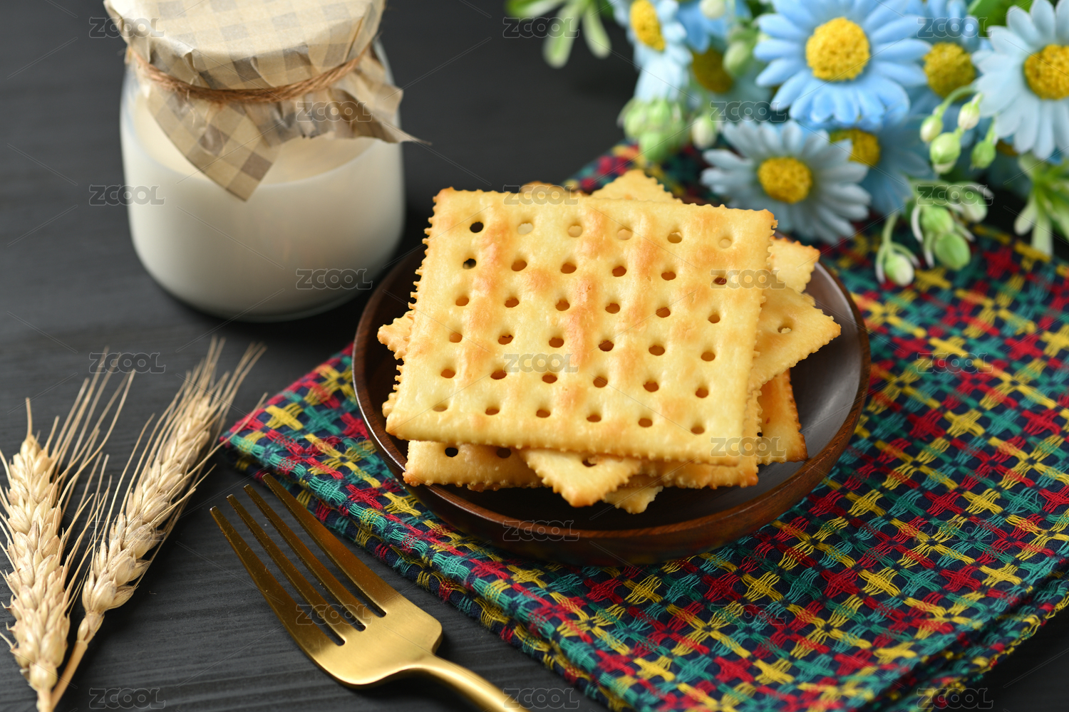 早餐 甜品 牛奶 饼干 曲奇 影棚 黑背景 美食 烘焙 健康 特写