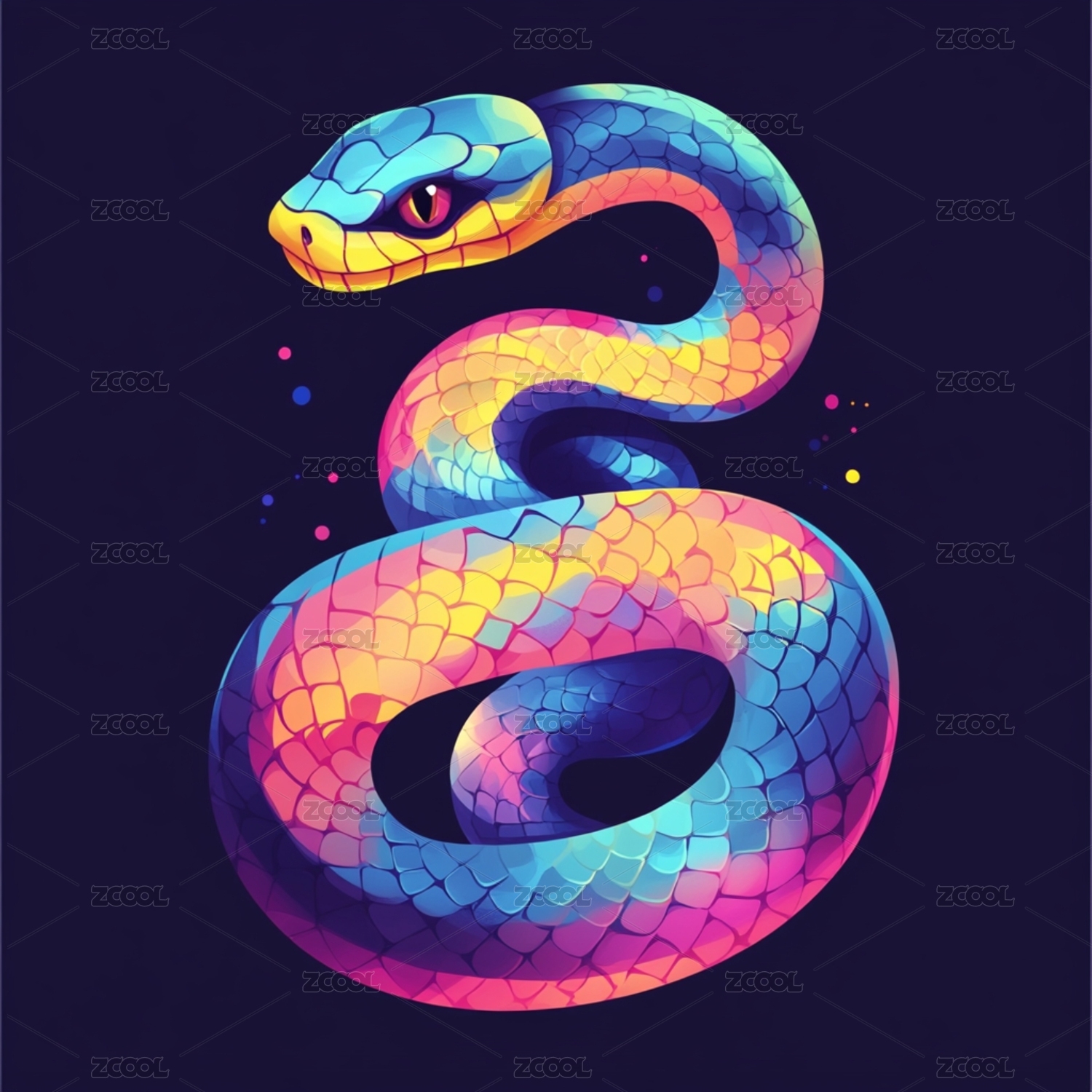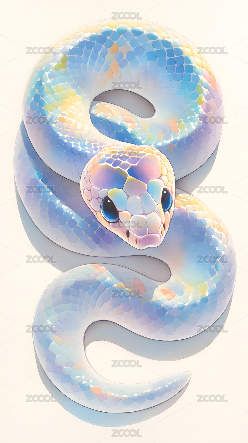 一条时尚炫彩蛇十二生肖全息色彩3D插画