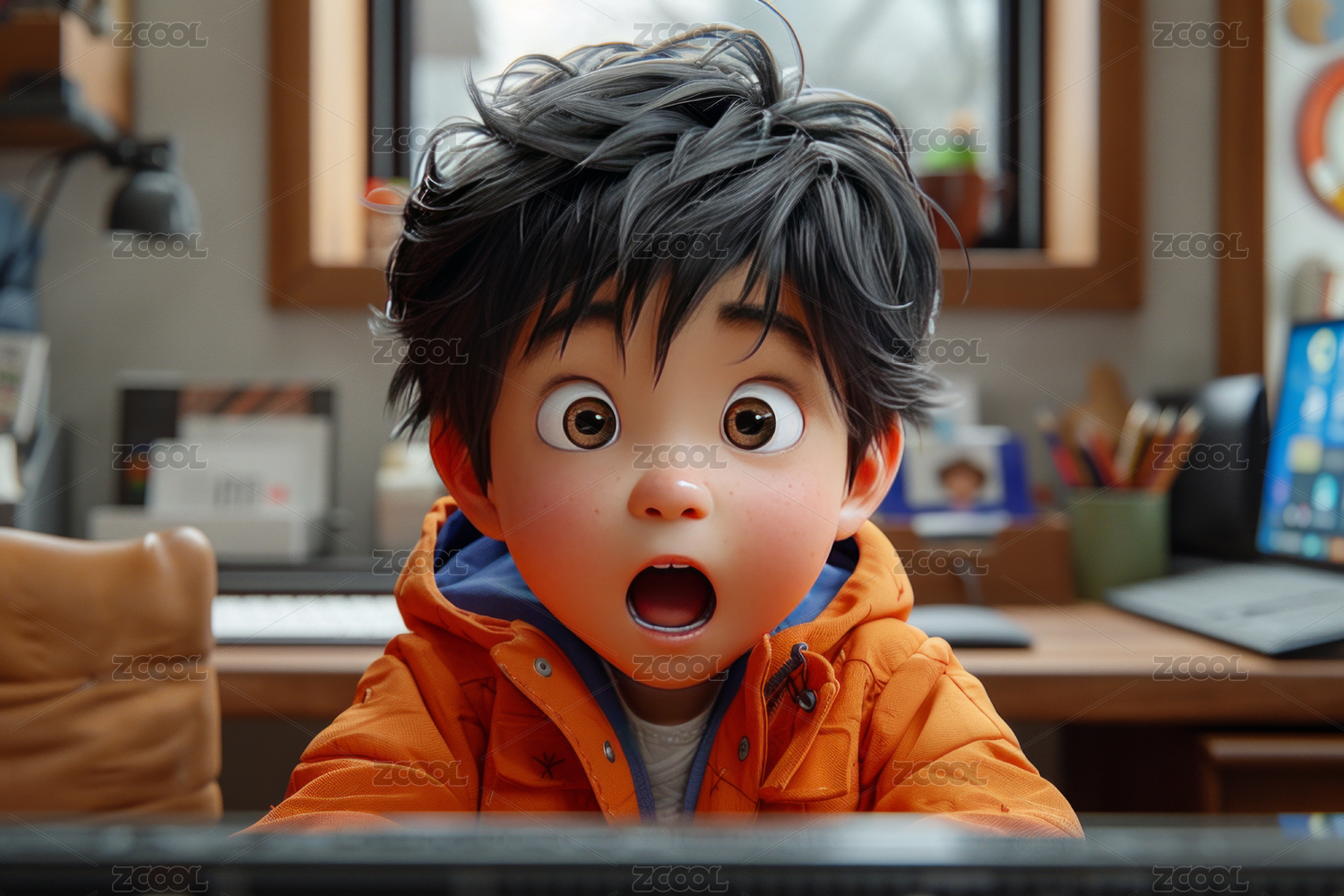 电脑,笔记本电脑,少年,卡通,学习,娱乐,学生,探索,可爱,素材